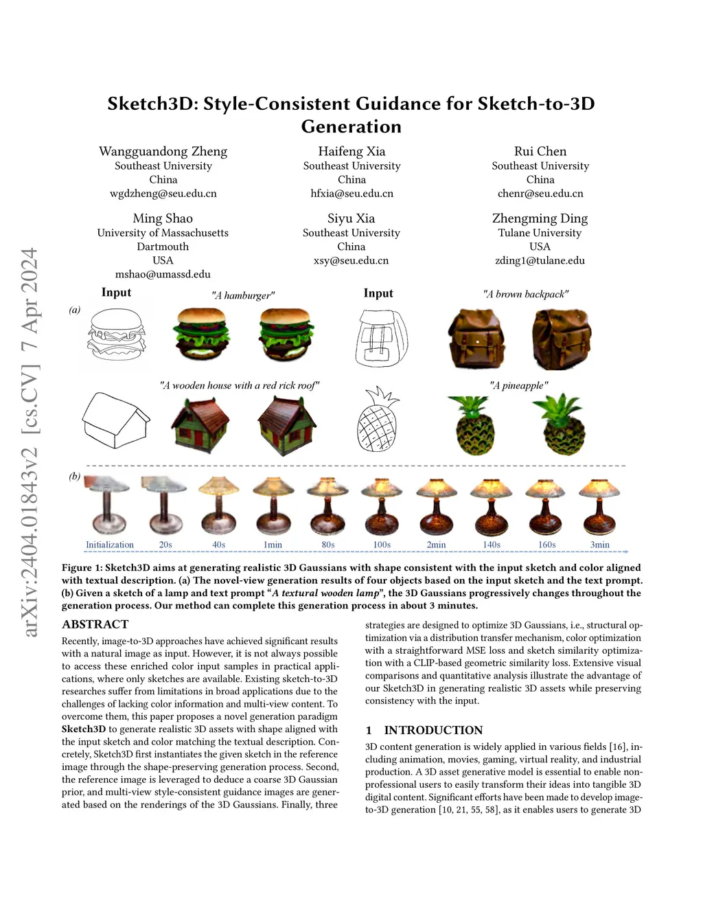 Sketch3D: Style-Consistent Guidance for Sketch-to-3D Generation