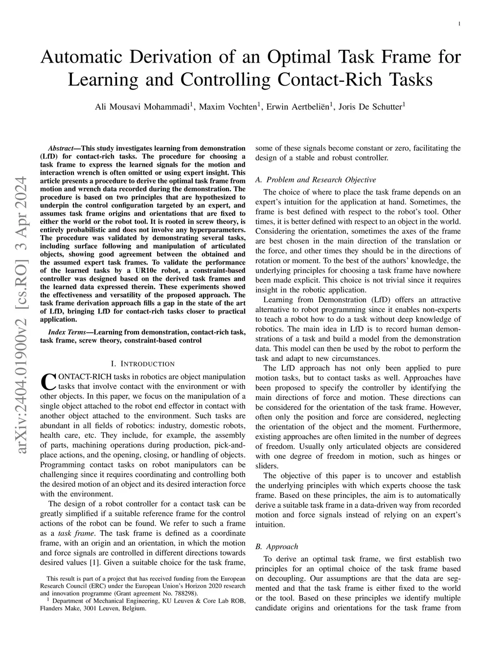 Automatic Derivation of an Optimal Task Frame for Learning and