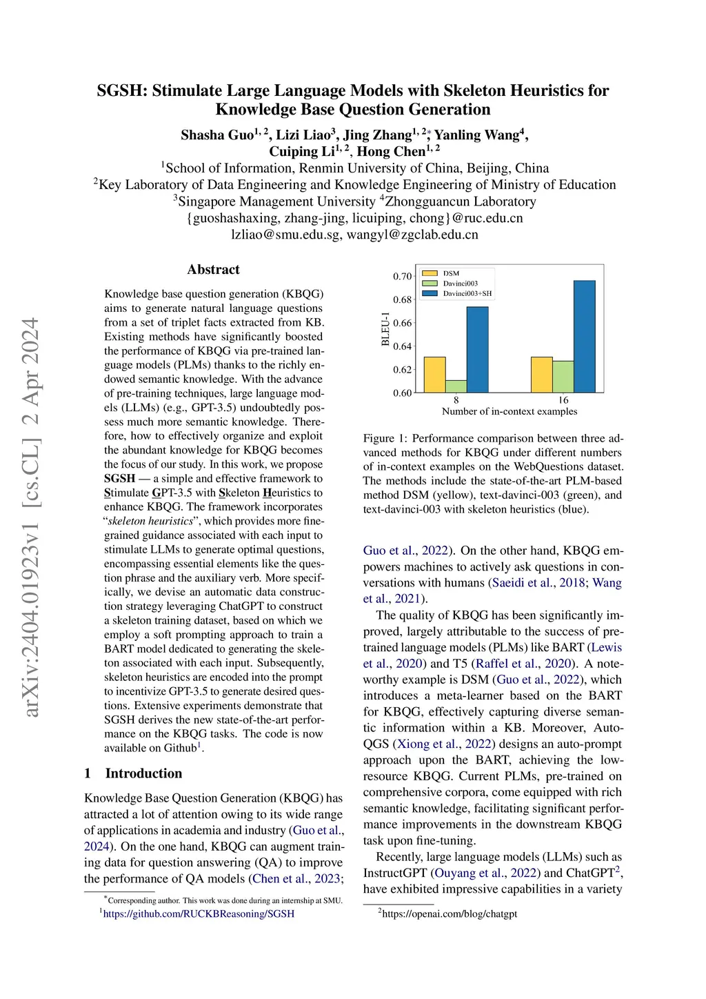 SGSH: Stimulate Large Language Models with Skeleton Heuristics for