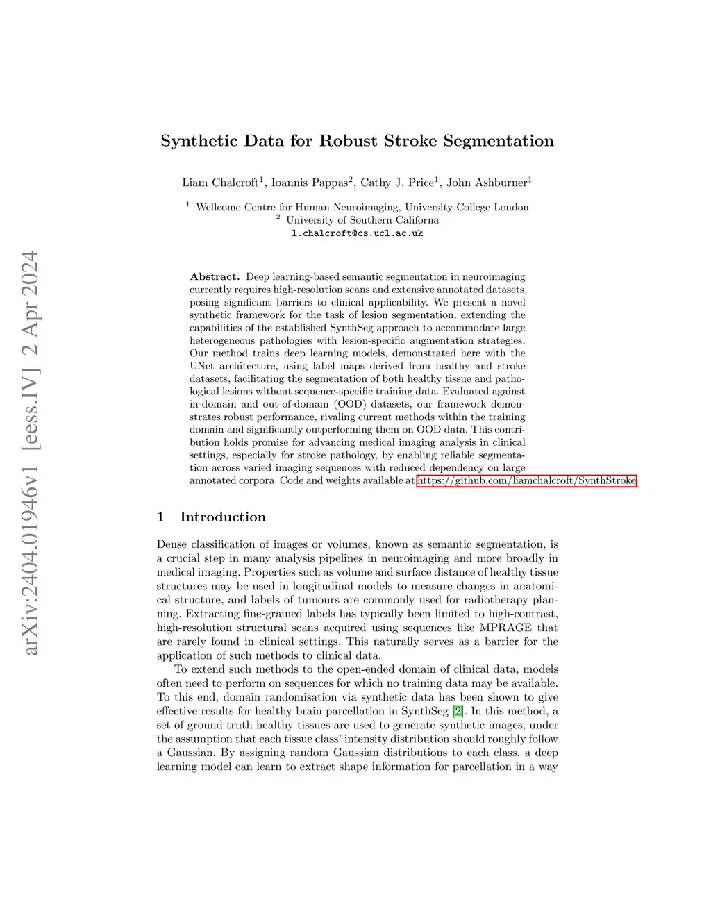 Current deep learning-based approaches to lesion segmentation in neuroimaging often depend on high-resolution images and extensive annotated data, limiting clinical applicability. This paper introduces a novel synthetic data framework tailored for stroke lesion segmentation, expanding the SynthSeg methodology to incorporate lesion-specific augmentations that simulate diverse pathological features. Using a modified nnUNet architecture, our approach trains models with label maps from healthy and stroke datasets, facilitating segmentation across both normal and pathological tissue without reliance on specific sequence-based training. Evaluation across in-domain and out-of-domain (OOD) datasets reveals that our method matches state-of-the-art performance within the training domain and significantly outperforms existing methods on OOD data. By minimizing dependence on large annotated datasets and allowing for cross-sequence applicability, our framework holds potential to improve clinical neuroimaging workflows, particularly in stroke pathology. PyTorch training code and weights are publicly available atthis https URL, along with an SPM toolbox featuring a plug-and-play model atthis https URL.