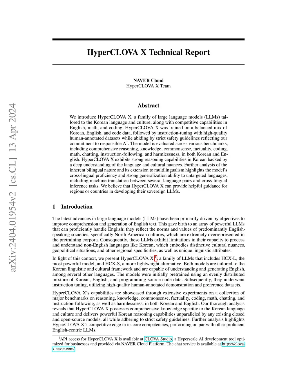 HyperCLOVA X Technical Report