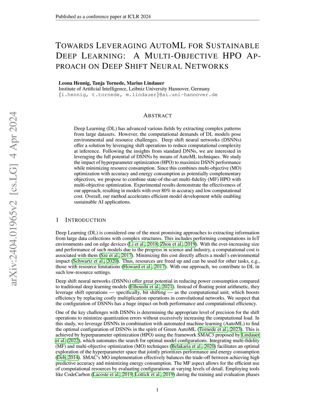 Deep Learning (DL) has advanced various fields by extracting complex patterns from large datasets. However, the computational demands of DL models pose environmental and resource challenges. Deep shift neural networks (DSNNs) offer a solution by leveraging shift operations to reduce computational complexity at inference. Following the insights from standard DNNs, we are interested in leveraging the full potential of DSNNs by means of AutoML techniques. We study the impact of hyperparameter optimization (HPO) to maximize DSNN performance while minimizing resource consumption. Since this combines multi-objective (MO) optimization with accuracy and energy consumption as potentially complementary objectives, we propose to combine state-of-the-art multi-fidelity (MF) HPO with multi-objective optimization. Experimental results demonstrate the effectiveness of our approach, resulting in models with over 80\% in accuracy and low computational cost. Overall, our method accelerates efficient model development while enabling sustainable AI applications.