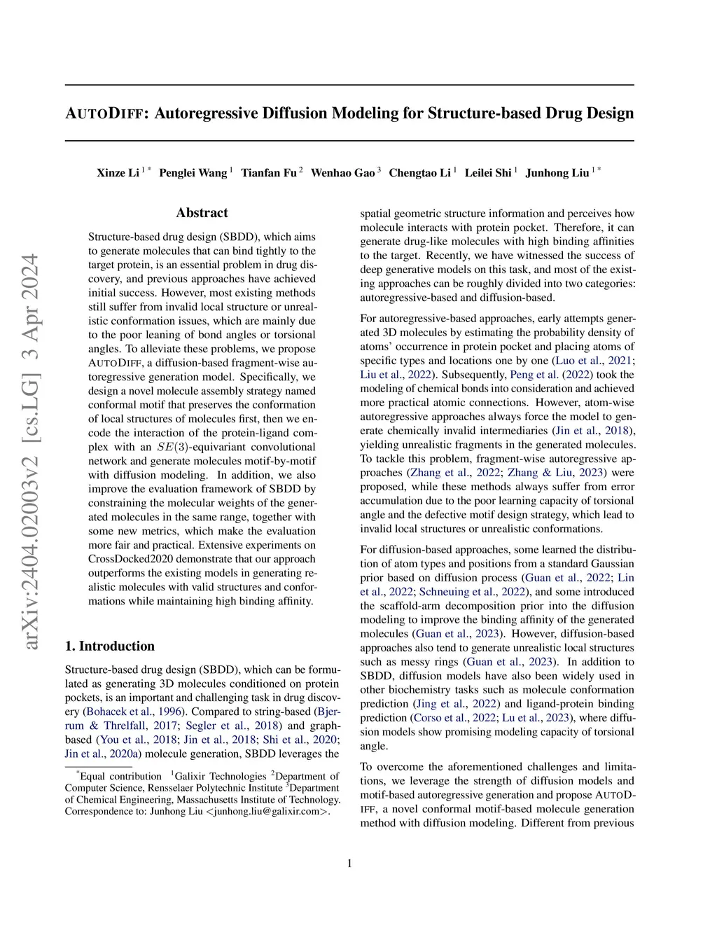 AUTODIFF: Autoregressive Diffusion Modeling for Structure-based Drug