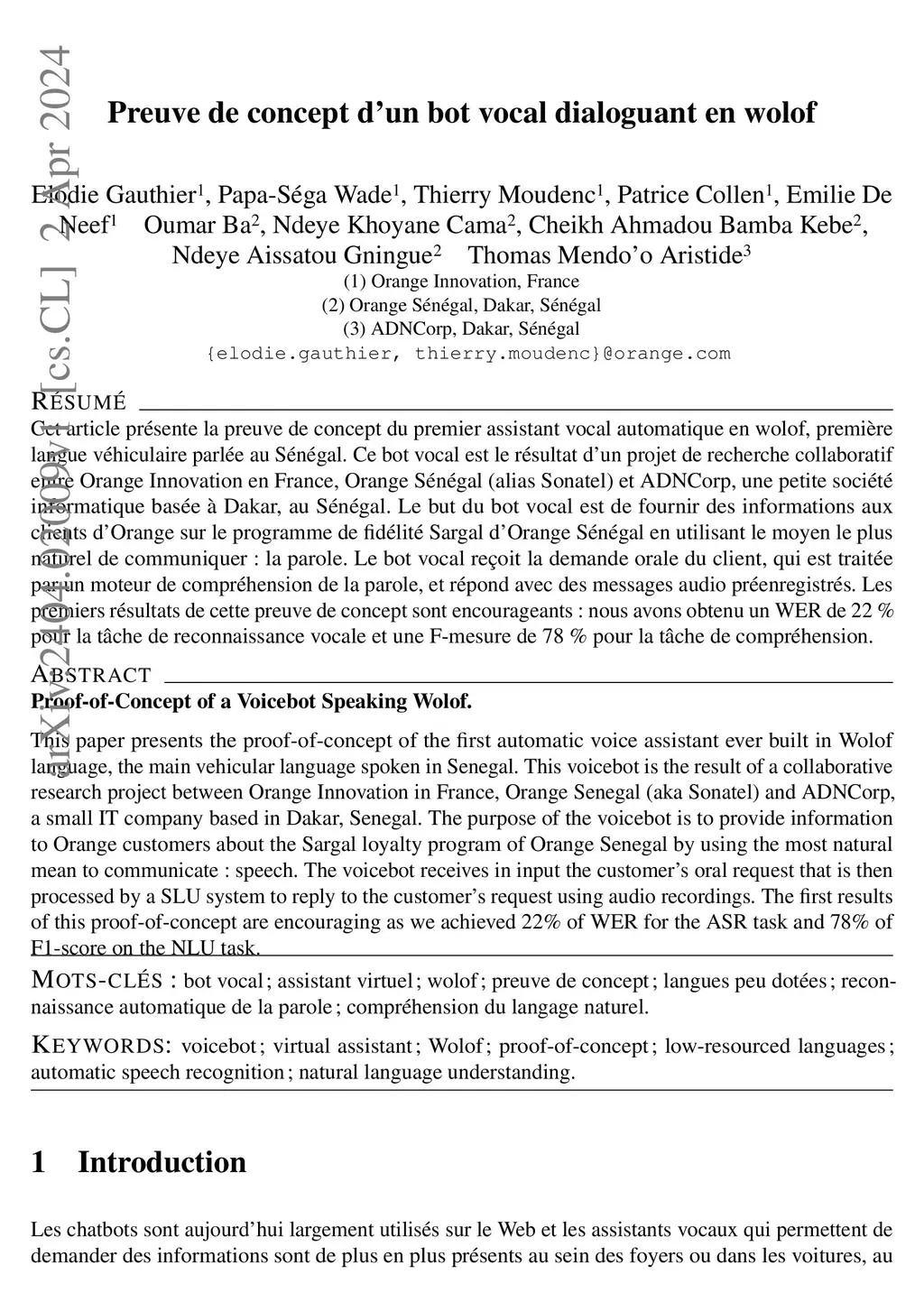 Preuve de concept dún bot vocal dialoguant en wolof