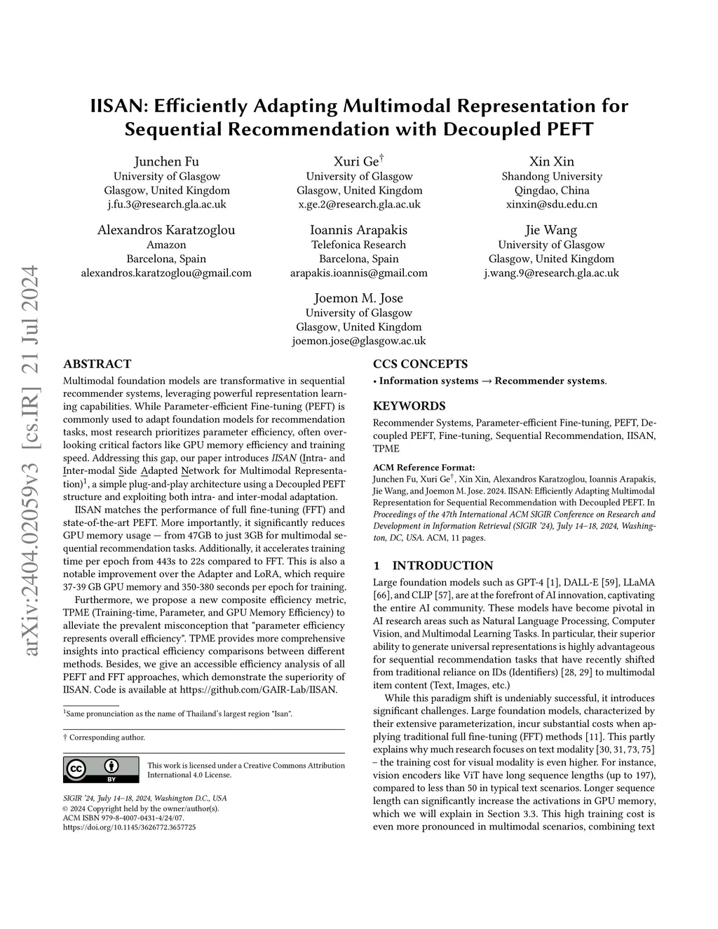 IISAN: Efficiently Adapting Multimodal Representation for Sequential