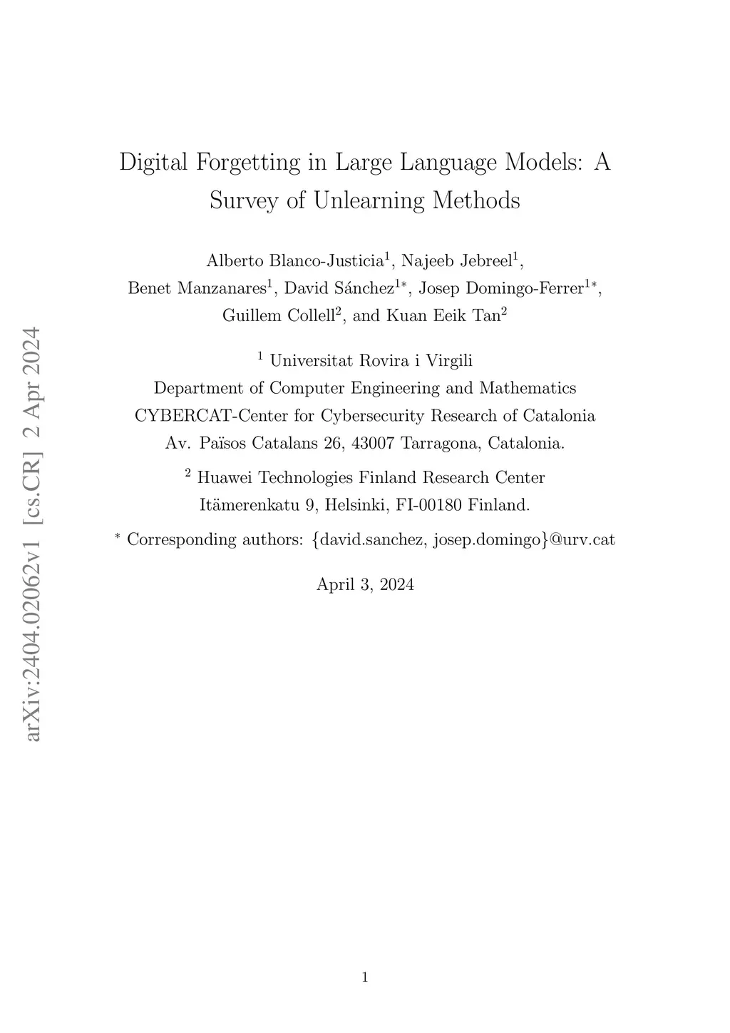 Digital Forgetting in Large Language Models: A Survey of Unlearning