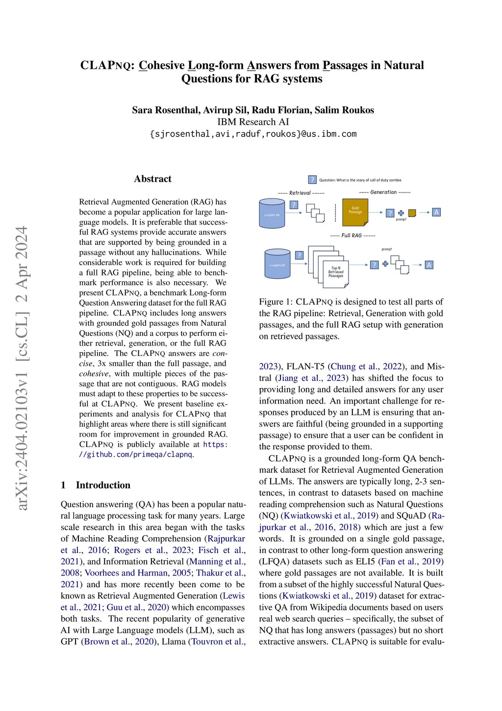 CLAPNQ: Cohesive Long-form Answers from Passages in Natural Questions