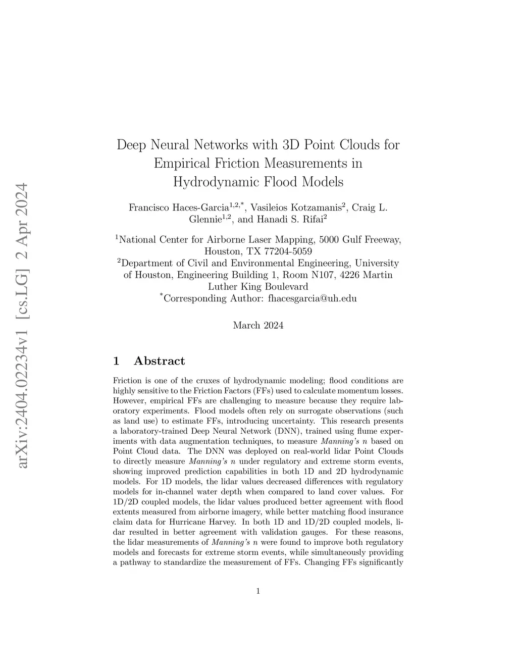 Friction is one of the cruxes of hydrodynamic modeling; flood conditions are highly sensitive to the Friction Factors (FFs) used to calculate momentum losses. However, empirical FFs are challenging to measure because they require laboratory experiments. Flood models often rely on surrogate observations (such as land use) to estimate FFs, introducing uncertainty. This research presents a laboratory-trained Deep Neural Network (DNN), trained using flume experiments with data augmentation techniques, to measure Manning's n based on Point Cloud data. The DNN was deployed on real-world lidar Point Clouds to directly measure Manning's n under regulatory and extreme storm events, showing improved prediction capabilities in both 1D and 2D hydrodynamic models. For 1D models, the lidar values decreased differences with regulatory models for in-channel water depth when compared to land cover values. For 1D/2D coupled models, the lidar values produced better agreement with flood extents measured from airborne imagery, while better matching flood insurance claim data for Hurricane Harvey. In both 1D and 1D/2D coupled models, lidar resulted in better agreement with validation gauges. For these reasons, the lidar measurements of Manning's n were found to improve both regulatory models and forecasts for extreme storm events, while simultaneously providing a pathway to standardize the measurement of FFs. Changing FFs significantly affected fluvial and pluvial flood models, while surge flooding was generally unaffected. Downstream flow conditions were found to change the importance of FFs to fluvial models, advancing the literature of friction in flood models. This research introduces a reliable, repeatable, and readily-accessible avenue to measure high-resolution FFs based on 3D point clouds, improving flood prediction, and removing uncertainty from hydrodynamic modeling.