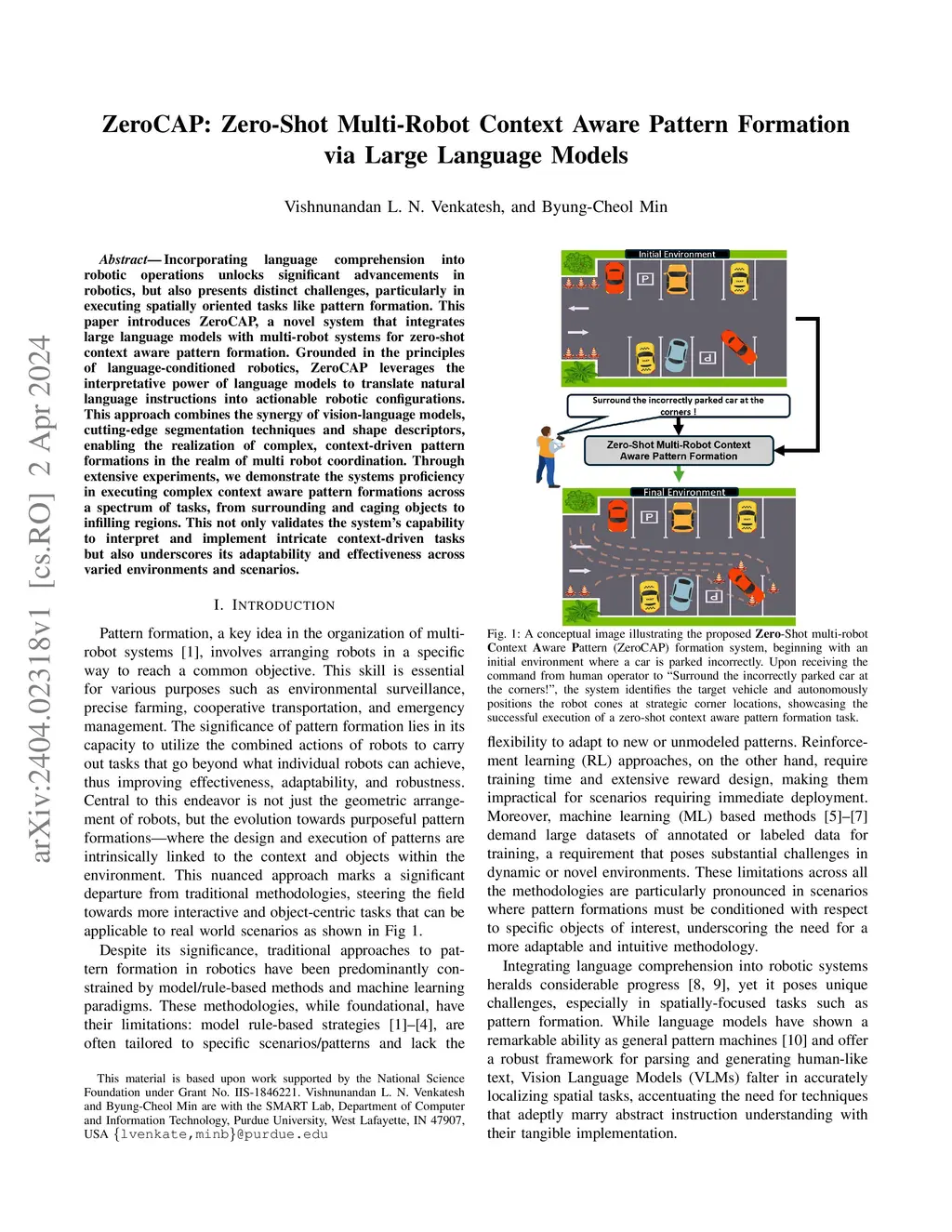 ZeroCAP: Zero-Shot Multi-Robot Context Aware Pattern Formation via Large Language Models