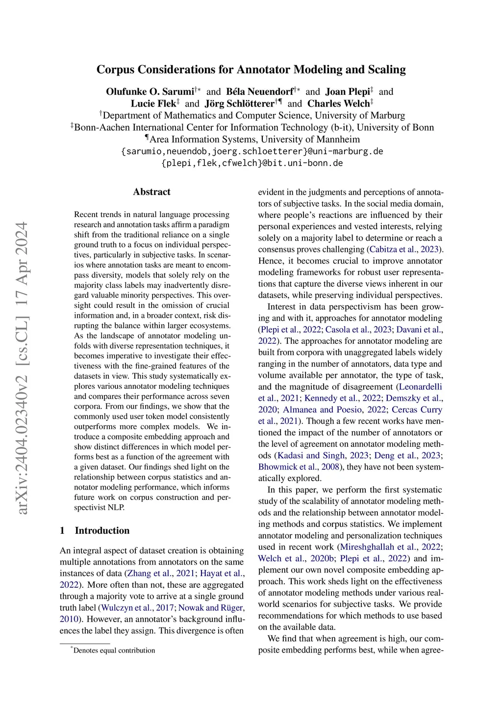 Recent trends in natural language processing research and annotation tasks affirm a paradigm shift from the traditional reliance on a single ground truth to a focus on individual perspectives, particularly in subjective tasks. In scenarios where annotation tasks are meant to encompass diversity, models that solely rely on the majority class labels may inadvertently disregard valuable minority perspectives. This oversight could result in the omission of crucial information and, in a broader context, risk disrupting the balance within larger ecosystems. As the landscape of annotator modeling unfolds with diverse representation techniques, it becomes imperative to investigate their effectiveness with the fine-grained features of the datasets in view. This study systematically explores various annotator modeling techniques and compares their performance across seven corpora. From our findings, we show that the commonly used user token model consistently outperforms more complex models. We introduce a composite embedding approach and show distinct differences in which model performs best as a function of the agreement with a given dataset. Our findings shed light on the relationship between corpus statistics and annotator modeling performance, which informs future work on corpus construction and perspectivist NLP.