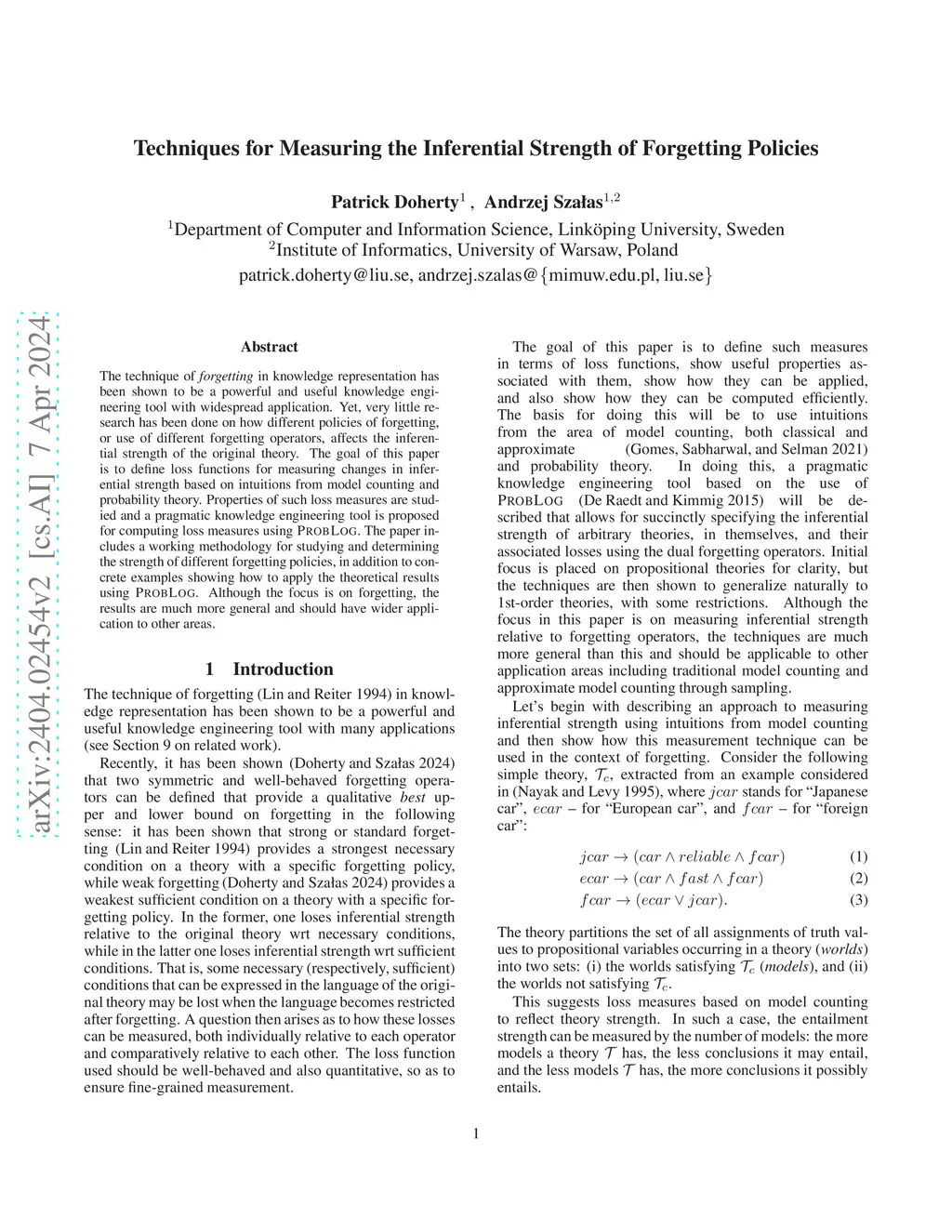 The technique of forgetting in knowledge representation has been shown to be a powerful and useful knowledge engineering tool with widespread application. Yet, very little research has been done on how different policies of forgetting, or use of different forgetting operators, affects the inferential strength of the original theory. The goal of this paper is to define loss functions for measuring changes in inferential strength based on intuitions from model counting and probability theory. Properties of such loss measures are studied and a pragmatic knowledge engineering tool is proposed for computing loss measures using ProbLog. The paper includes a working methodology for studying and determining the strength of different forgetting policies, in addition to concrete examples showing how to apply the theoretical results using ProbLog. Although the focus is on forgetting, the results are much more general and should have wider application to other areas.