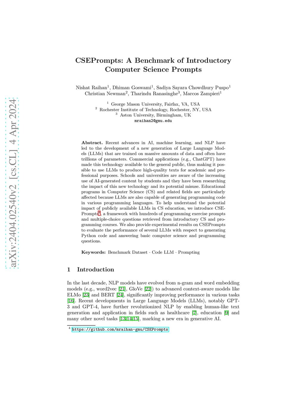 CSEPrompts: A Benchmark of Introductory Computer Science Prompts