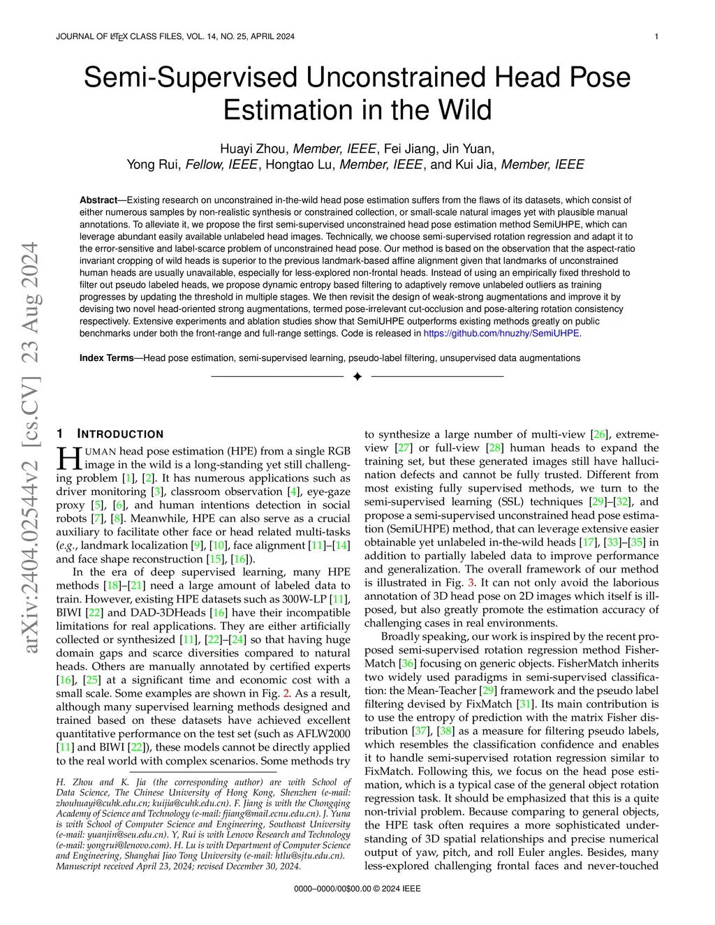 Semi-Supervised Unconstrained Head Pose Estimation in the Wild