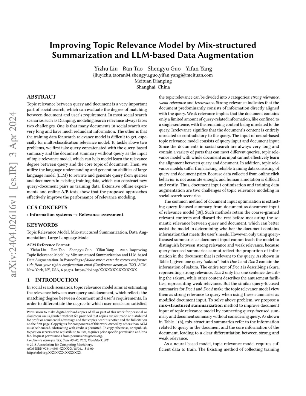 Improving Topic Relevance Model by Mix-structured Summarization and