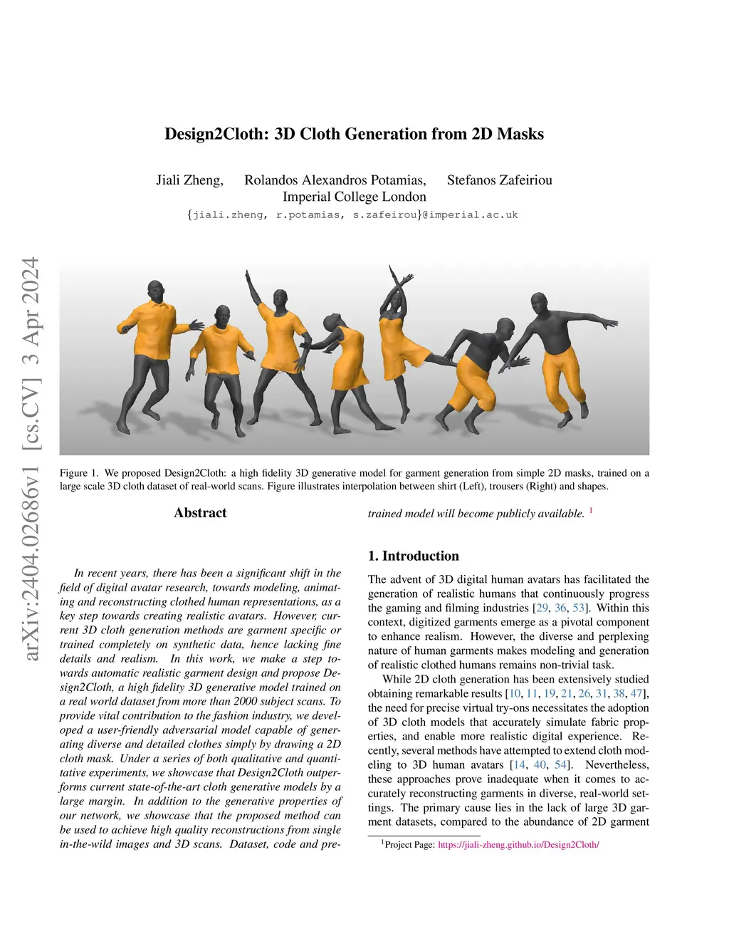 Design2Cloth: 3D Cloth Generation from 2D Masks