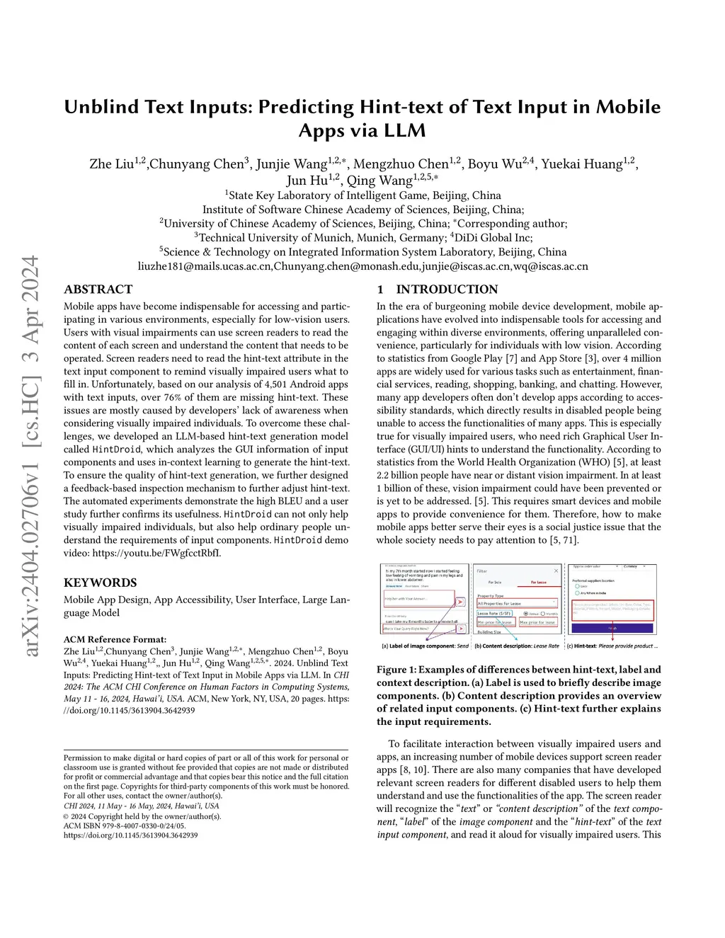 Unblind Text Inputs: Predicting Hint-text of Text Input in Mobile Apps