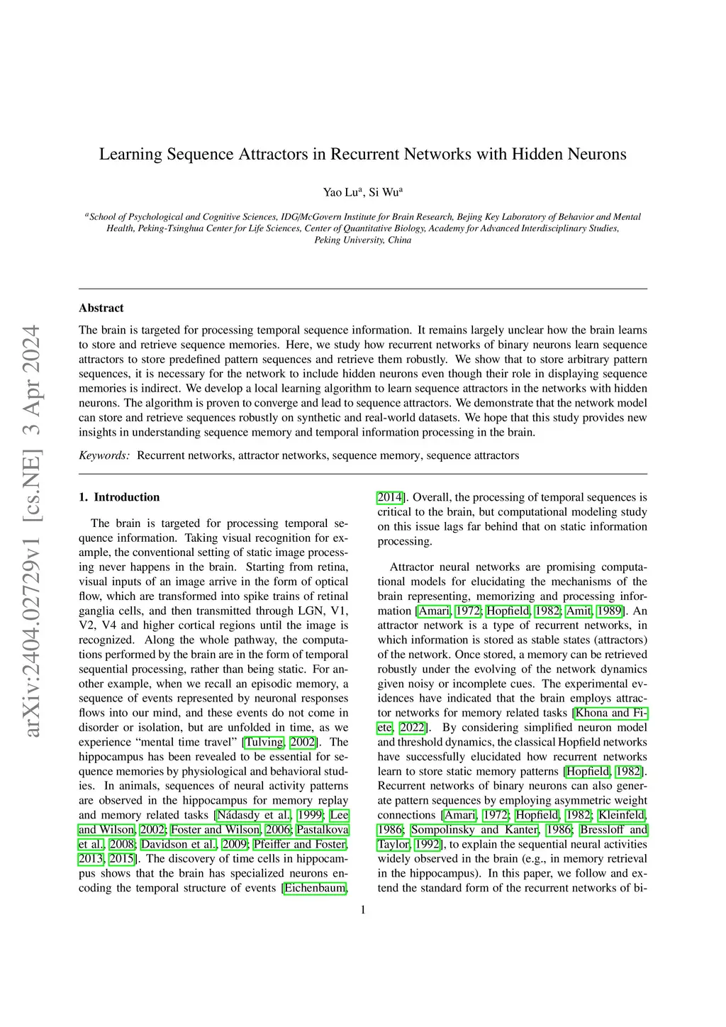 Learning Sequence Attractors in Recurrent Networks with Hidden Neurons