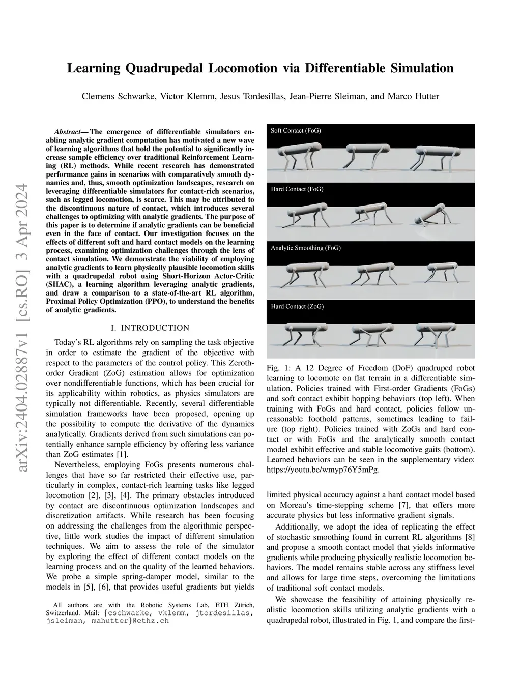 Differentiable simulators promise to improve sample efficiency in robot learning by providing analytic gradients of the system dynamics. Yet, their application to contact-rich tasks like locomotion is complicated by the inherently non-smooth nature of contact, impeding effective gradient-based optimization. Existing works thus often rely on soft contact models that provide smooth gradients but lack physical accuracy, constraining results to simulation. To address this limitation, we propose a differentiable contact model designed to provide informative gradients while maintaining high physical fidelity. We demonstrate the efficacy of our approach by training a quadrupedal locomotion policy within our differentiable simulator leveraging analytic gradients and successfully transferring the learned policy zero-shot to the real world. To the best of our knowledge, this represents the first successful sim-to-real transfer of a legged locomotion policy learned entirely within a differentiable simulator, establishing the feasibility of using differentiable simulation for real-world locomotion control.