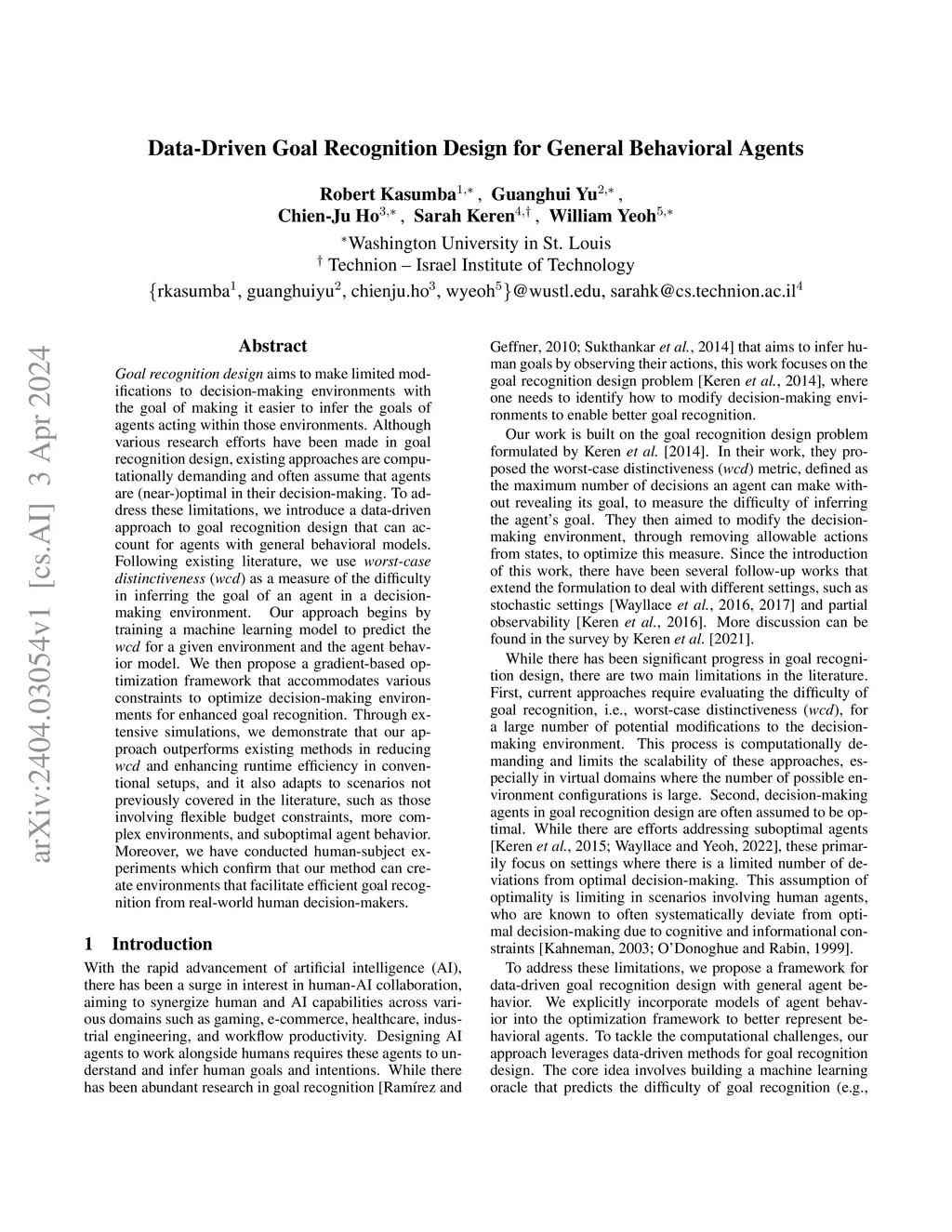 Goal recognition design (GRD) aims to make limited modifications to decision-making environments to make it easier to infer the goals of agents acting within those environments. Although various research efforts have been made in goal recognition design, existing approaches are computationally demanding and often assume that agents are (near-)optimal in their decision-making. To address these limitations, we leverage machine learning methods for goal recognition design that can both improve run-time efficiency and account for agents with general behavioral models. Following existing literature, we use worst-case distinctiveness (wcd) as a measure of the difficulty in inferring the goal of an agent in a decision-making environment. Our approach begins by training a machine learning model to predict the wcd for a given environment and the agent behavior model. We then propose a gradient-based optimization framework that accommodates various constraints to optimize decision-making environments for enhanced goal recognition. Through extensive simulations, we demonstrate that our approach outperforms existing methods in reducing wcd and enhances runtime efficiency. Moreover, our approach also adapts to settings in which existing approaches do not apply, such as those involving flexible budget constraints, more complex environments, and suboptimal agent behavior. Finally, we conducted human-subject experiments that demonstrate that our method creates environments that facilitate efficient goal recognition from human decision-makers.