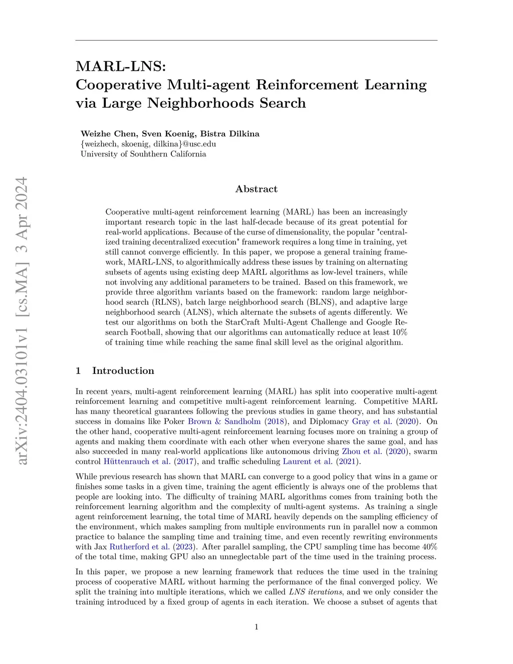 MARL-LNS: Cooperative Multi-agent Reinforcement Learning via Large