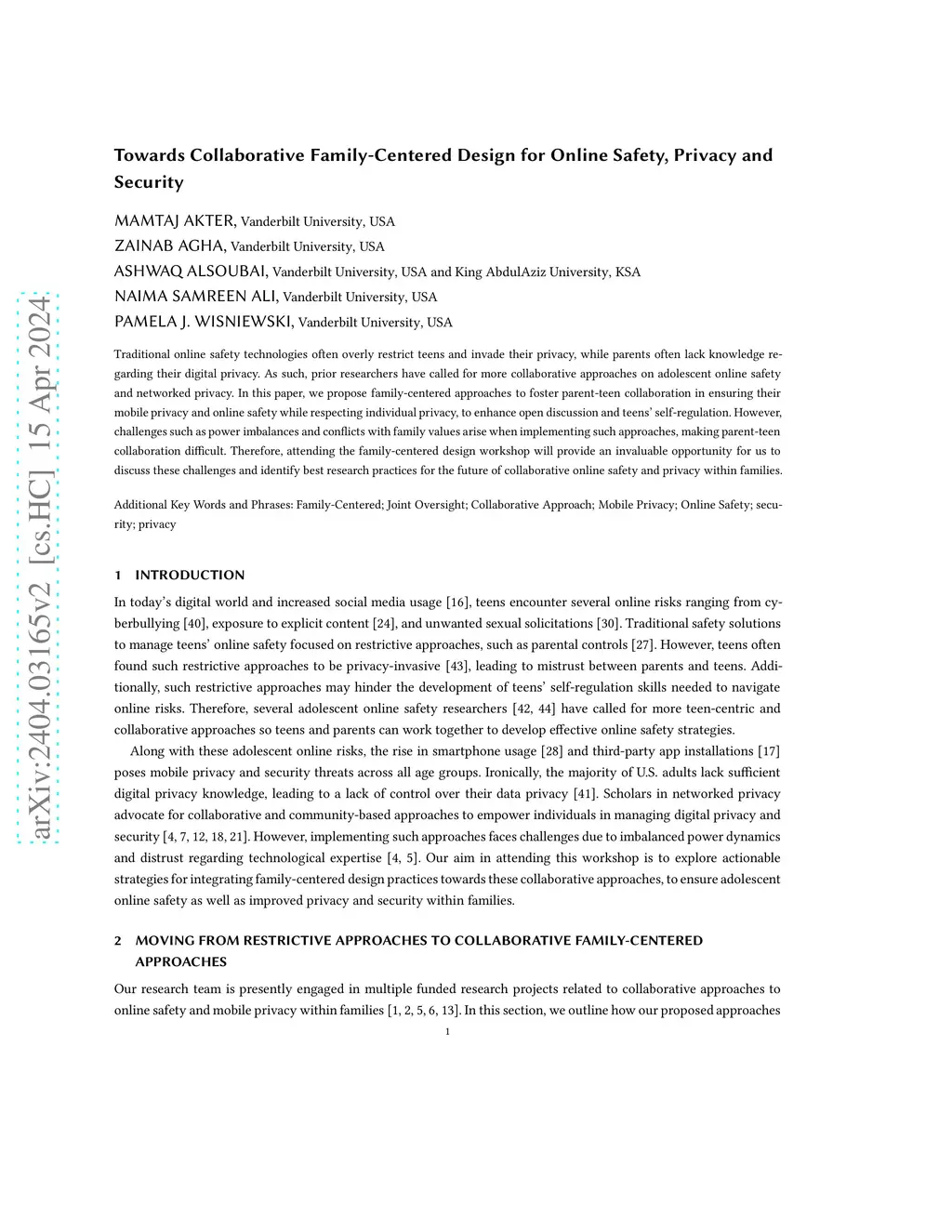 Towards Collaborative Family-Centered Design for Online Safety, Privacy