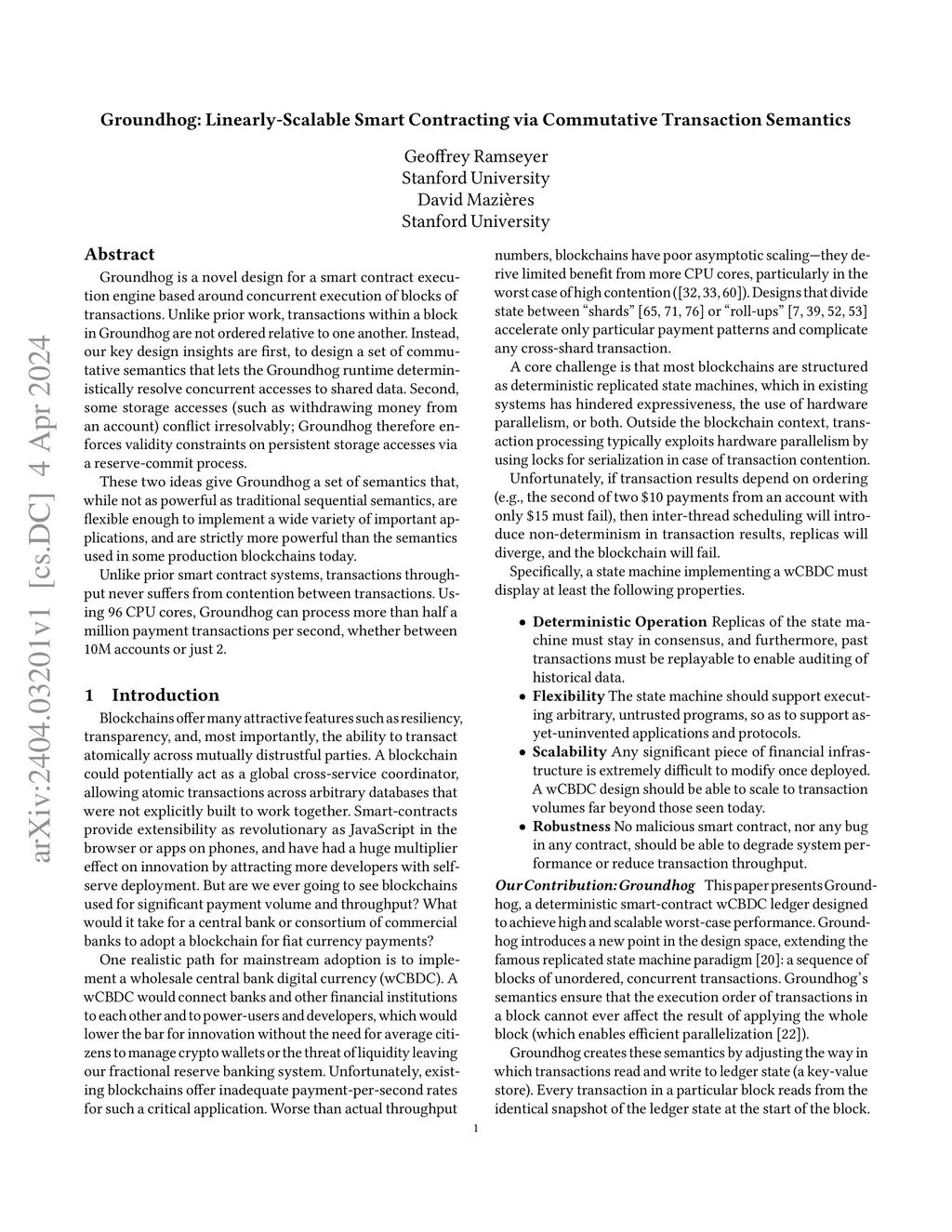 Groundhog: Linearly-Scalable Smart Contracting via Commutative