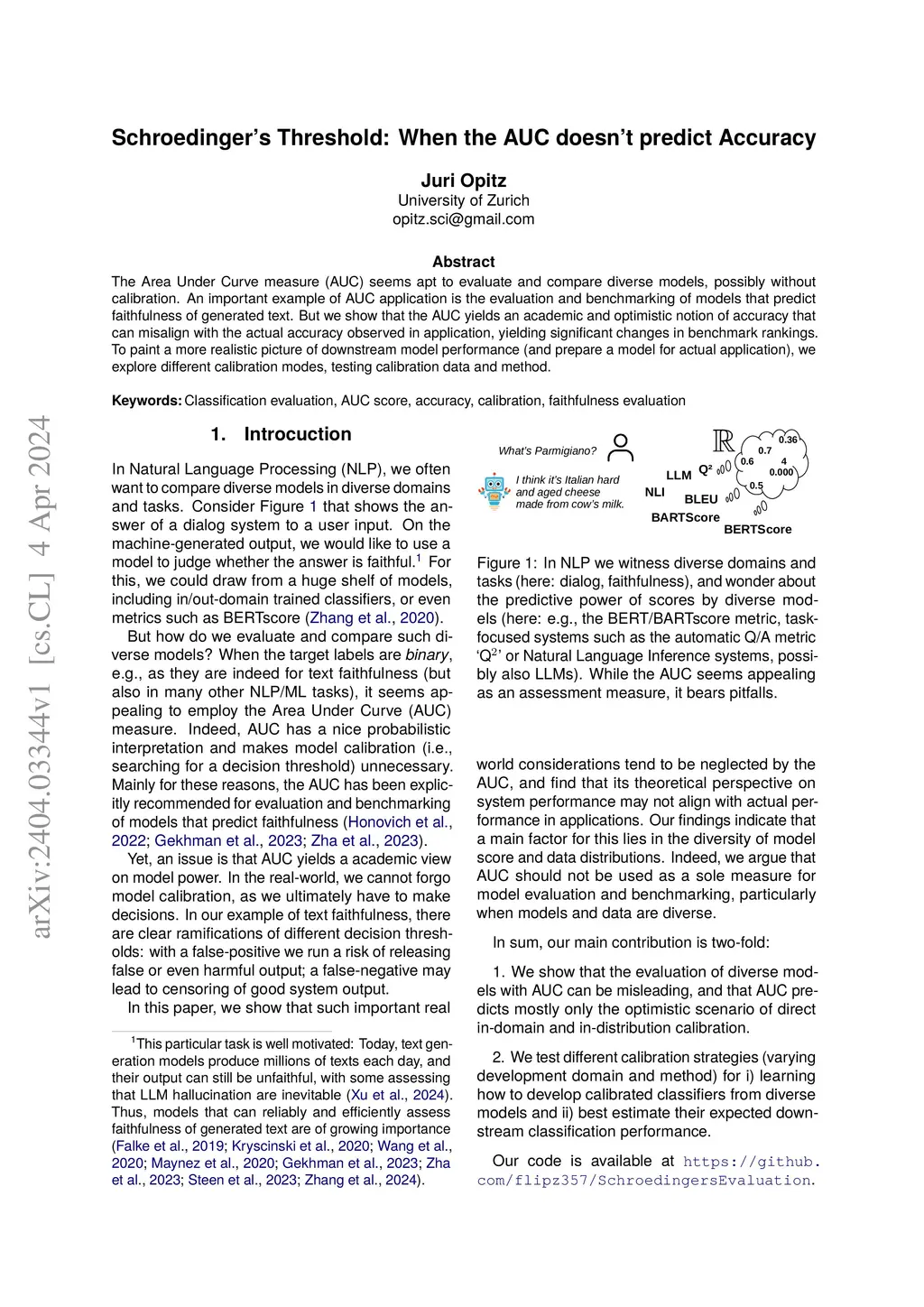 The Area Under Curve measure (AUC) seems apt to evaluate and compare diverse models, possibly without calibration. An important example of AUC application is the evaluation and benchmarking of models that predict faithfulness of generated text. But we show that the AUC yields an academic and optimistic notion of accuracy that can misalign with the actual accuracy observed in application, yielding significant changes in benchmark rankings. To paint a more realistic picture of downstream model performance (and prepare a model for actual application), we explore different calibration modes, testing calibration data and method.