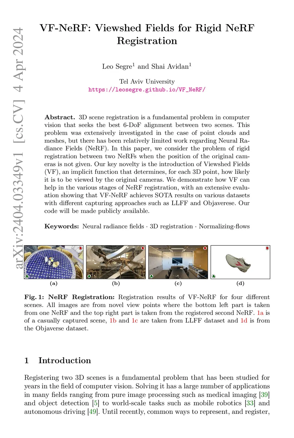 VF-NeRF: Viewshed Fields for Rigid NeRF Registration