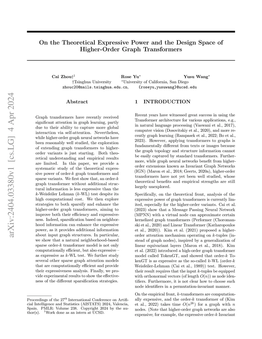 Graph transformers have recently received significant attention in graph learning, partly due to their ability to capture more global interaction via self-attention. Nevertheless, while higher-order graph neural networks have been reasonably well studied, the exploration of extending graph transformers to higher-order variants is just starting. Both theoretical understanding and empirical results are limited. In this paper, we provide a systematic study of the theoretical expressive power of order- graph transformers and sparse variants. We first show that, an order- graph transformer without additional structural information is less expressive than the -Weisfeiler Lehman (-WL) test despite its high computational cost. We then explore strategies to both sparsify and enhance the higher-order graph transformers, aiming to improve both their efficiency and expressiveness. Indeed, sparsification based on neighborhood information can enhance the expressive power, as it provides additional information about input graph structures. In particular, we show that a natural neighborhood-based sparse order- transformer model is not only computationally efficient, but also expressive -- as expressive as -WL test. We further study several other sparse graph attention models that are computationally efficient and provide their expressiveness analysis. Finally, we provide experimental results to show the effectiveness of the different sparsification strategies.