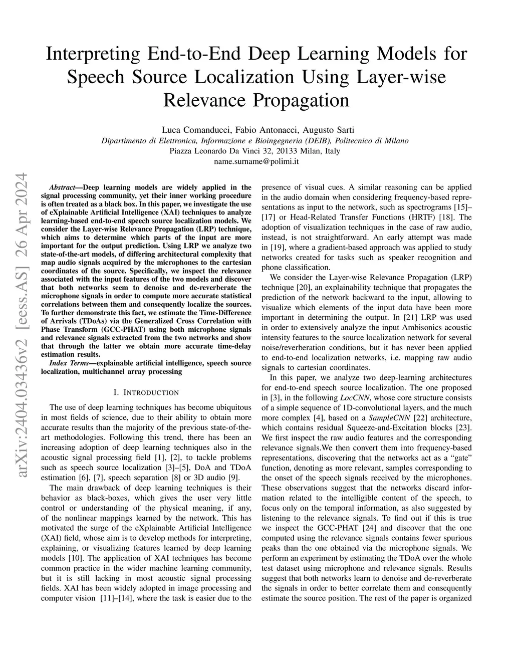 Deep learning models are widely applied in the signal processing community, yet their inner working procedure is often treated as a black box. In this paper, we investigate the use of eXplainable Artificial Intelligence (XAI) techniques to learning-based end-to-end speech source localization models. We consider the Layer-wise Relevance Propagation (LRP) technique, which aims to determine which parts of the input are more important for the output prediction. Using LRP we analyze two state-of-the-art models, of differing architectural complexity that map audio signals acquired by the microphones to the cartesian coordinates of the source. Specifically, we inspect the relevance associated with the input features of the two models and discover that both networks denoise and de-reverberate the microphone signals to compute more accurate statistical correlations between them and consequently localize the sources. To further demonstrate this fact, we estimate the Time-Difference of Arrivals (TDoAs) via the Generalized Cross Correlation with Phase Transform (GCC-PHAT) using both microphone signals and relevance signals extracted from the two networks and show that through the latter we obtain more accurate time-delay estimation results.