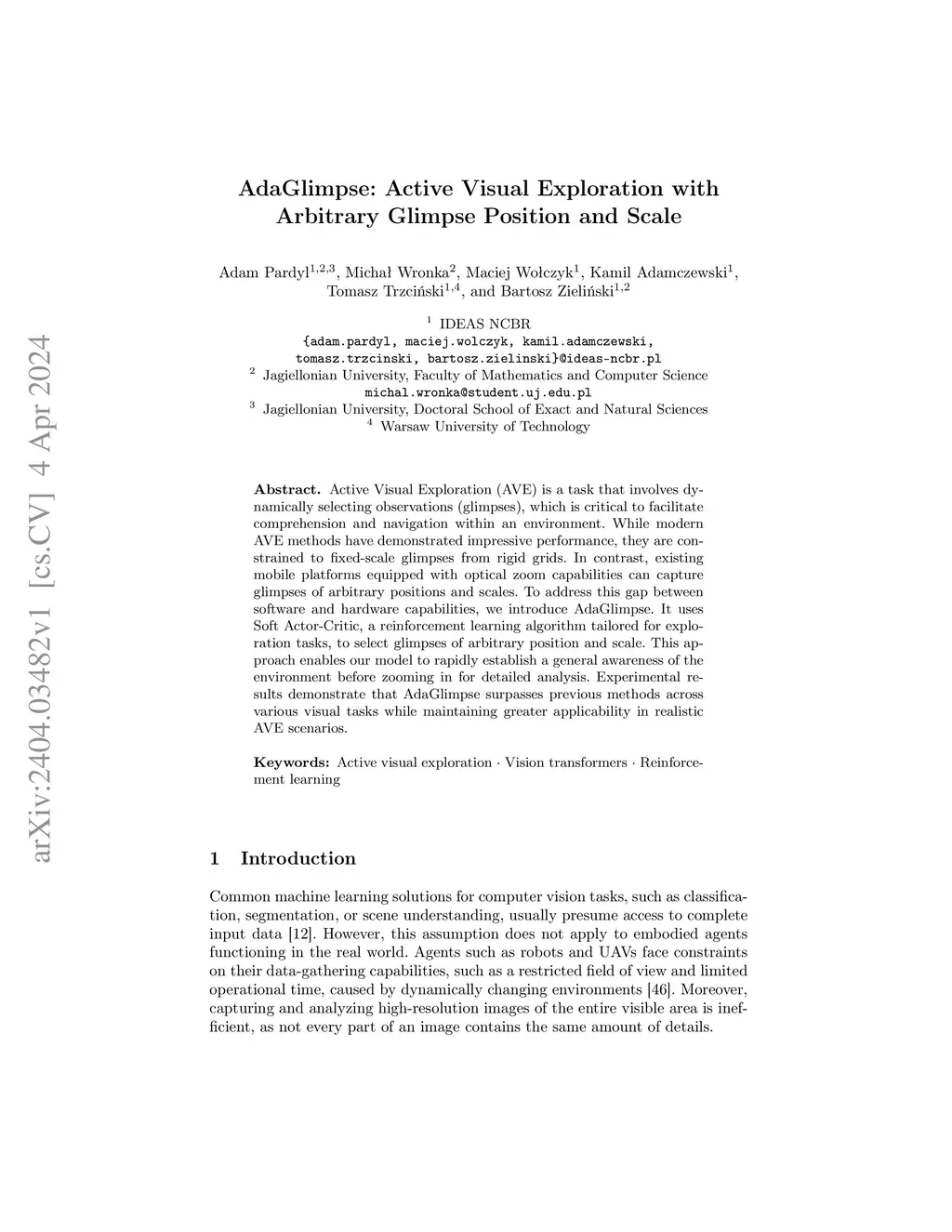 AdaGlimpse: Active Visual Exploration with Arbitrary Glimpse Position