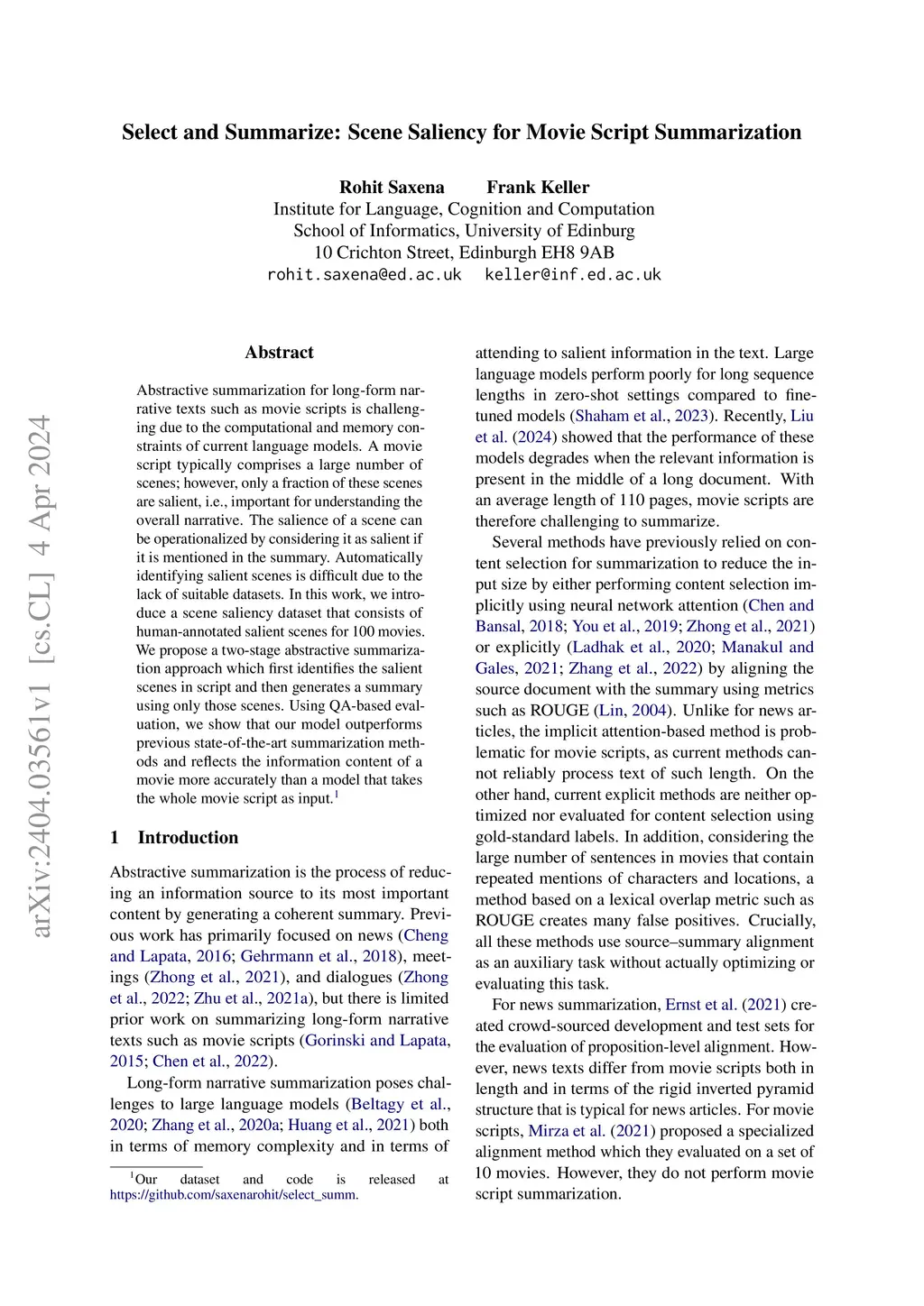 Select and Summarize: Scene Saliency for Movie Script Summarization