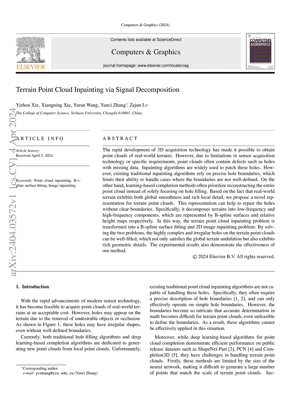 Terrain Point Cloud Inpainting via Signal Decomposition