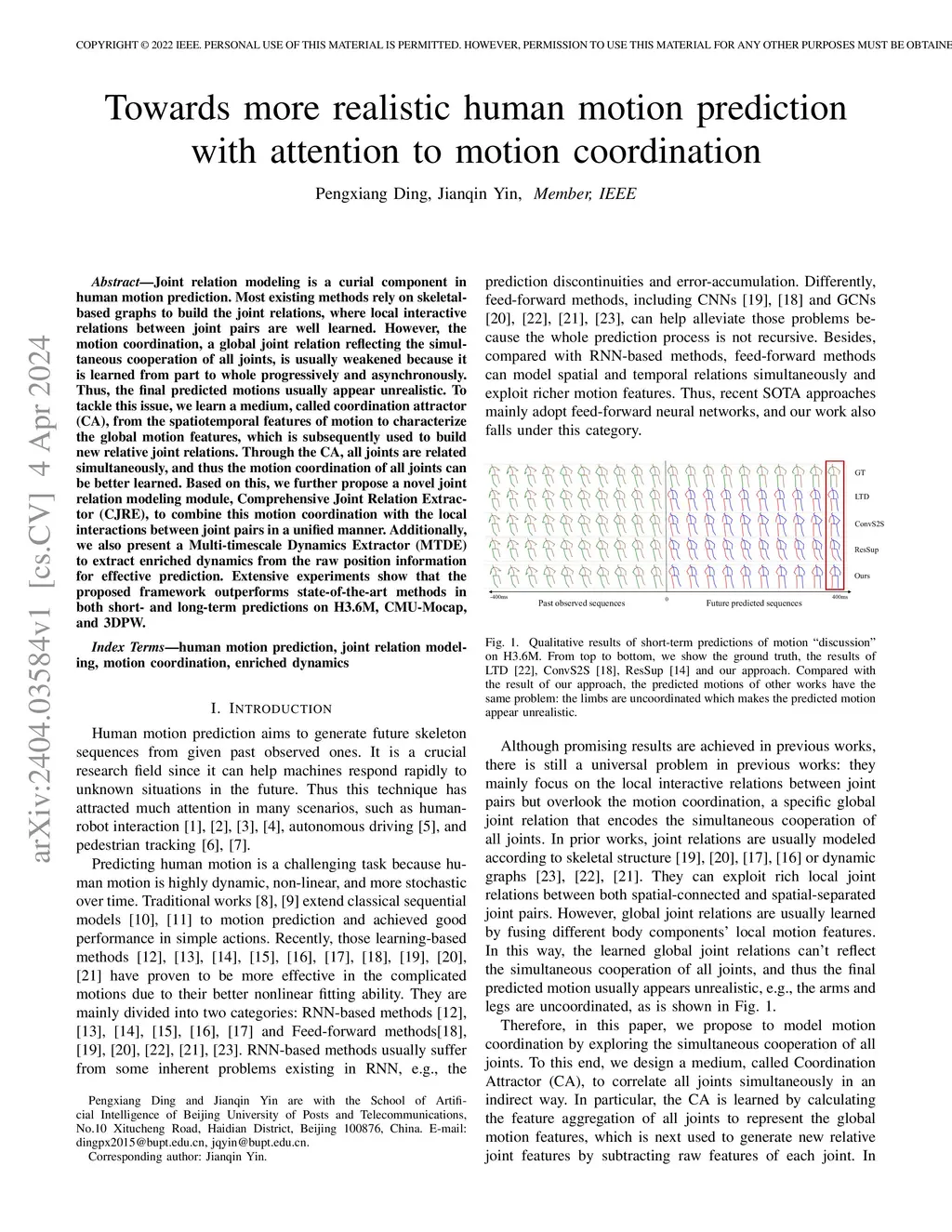 Joint relation modeling is a curial component in human motion prediction. Most existing methods rely on skeletal-based graphs to build the joint relations, where local interactive relations between joint pairs are well learned. However, the motion coordination, a global joint relation reflecting the simultaneous cooperation of all joints, is usually weakened because it is learned from part to whole progressively and asynchronously. Thus, the final predicted motions usually appear unrealistic. To tackle this issue, we learn a medium, called coordination attractor (CA), from the spatiotemporal features of motion to characterize the global motion features, which is subsequently used to build new relative joint relations. Through the CA, all joints are related simultaneously, and thus the motion coordination of all joints can be better learned. Based on this, we further propose a novel joint relation modeling module, Comprehensive Joint Relation Extractor (CJRE), to combine this motion coordination with the local interactions between joint pairs in a unified manner. Additionally, we also present a Multi-timescale Dynamics Extractor (MTDE) to extract enriched dynamics from the raw position information for effective prediction. Extensive experiments show that the proposed framework outperforms state-of-the-art methods in both short- and long-term predictions on H3.6M, CMU-Mocap, and 3DPW.