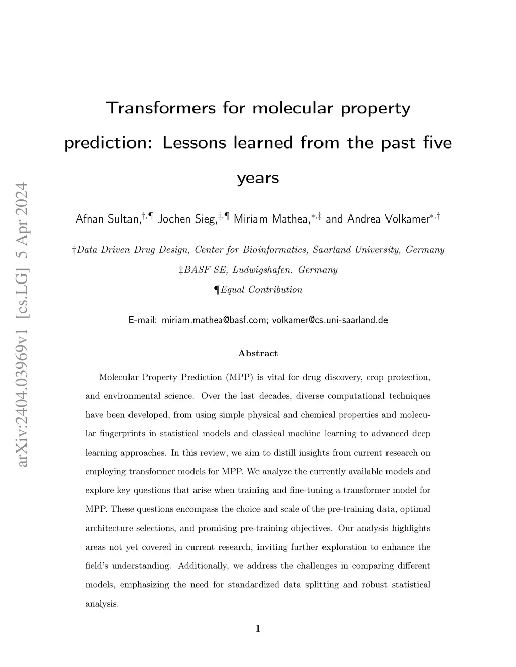 Molecular Property Prediction (MPP) is vital for drug discovery, crop protection, and environmental science. Over the last decades, diverse computational techniques have been developed, from using simple physical and chemical properties and molecular fingerprints in statistical models and classical machine learning to advanced deep learning approaches. In this review, we aim to distill insights from current research on employing transformer models for MPP. We analyze the currently available models and explore key questions that arise when training and fine-tuning a transformer model for MPP. These questions encompass the choice and scale of the pre-training data, optimal architecture selections, and promising pre-training objectives. Our analysis highlights areas not yet covered in current research, inviting further exploration to enhance the field's understanding. Additionally, we address the challenges in comparing different models, emphasizing the need for standardized data splitting and robust statistical analysis.