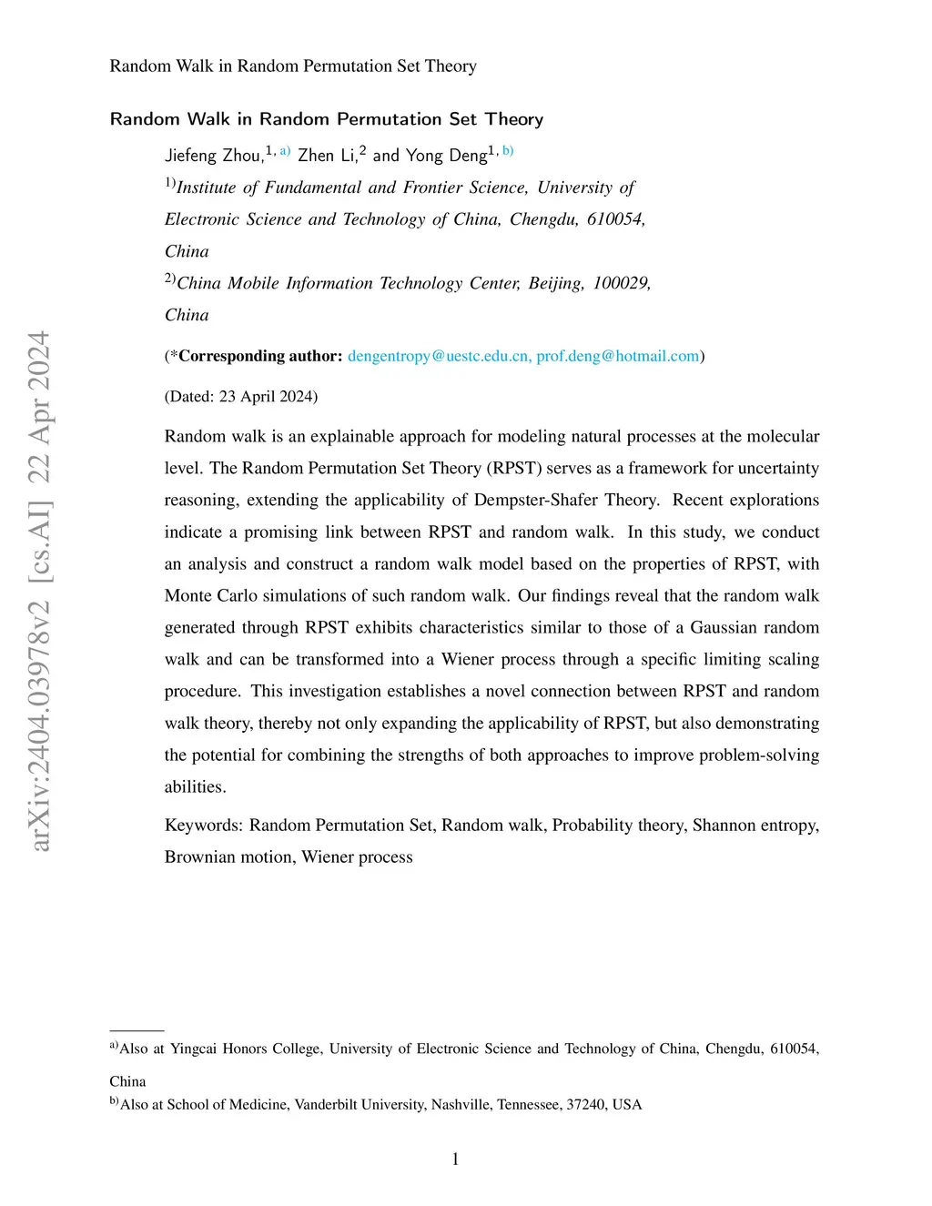 Random walk is an explainable approach for modeling natural processes at the molecular level. The Random Permutation Set Theory (RPST) serves as a framework for uncertainty reasoning, extending the applicability of Dempster-Shafer Theory. Recent explorations indicate a promising link between RPST and random walk. In this study, we conduct an analysis and construct a random walk model based on the properties of RPST, with Monte Carlo simulations of such random walk. Our findings reveal that the random walk generated through RPST exhibits characteristics similar to those of a Gaussian random walk and can be transformed into a Wiener process through a specific limiting scaling procedure. This investigation establishes a novel connection between RPST and random walk theory, thereby not only expanding the applicability of RPST, but also demonstrating the potential for combining the strengths of both approaches to improve problem-solving abilities.