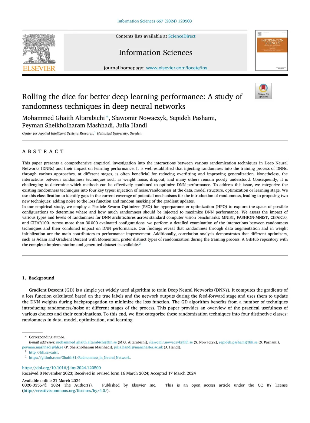 This paper investigates how various randomization techniques impact Deep Neural Networks (DNNs). Randomization, like weight noise and dropout, aids in reducing overfitting and enhancing generalization, but their interactions are poorly understood. The study categorizes randomness techniques into four types and proposes new methods: adding noise to the loss function and random masking of gradient updates. Using Particle Swarm Optimizer (PSO) for hyperparameter optimization, it explores optimal configurations across MNIST, FASHION-MNIST, CIFAR10, and CIFAR100 datasets. Over 30,000 configurations are evaluated, revealing data augmentation and weight initialization randomness as main performance contributors. Correlation analysis shows different optimizers prefer distinct randomization types. The complete implementation and dataset are available on GitHub.