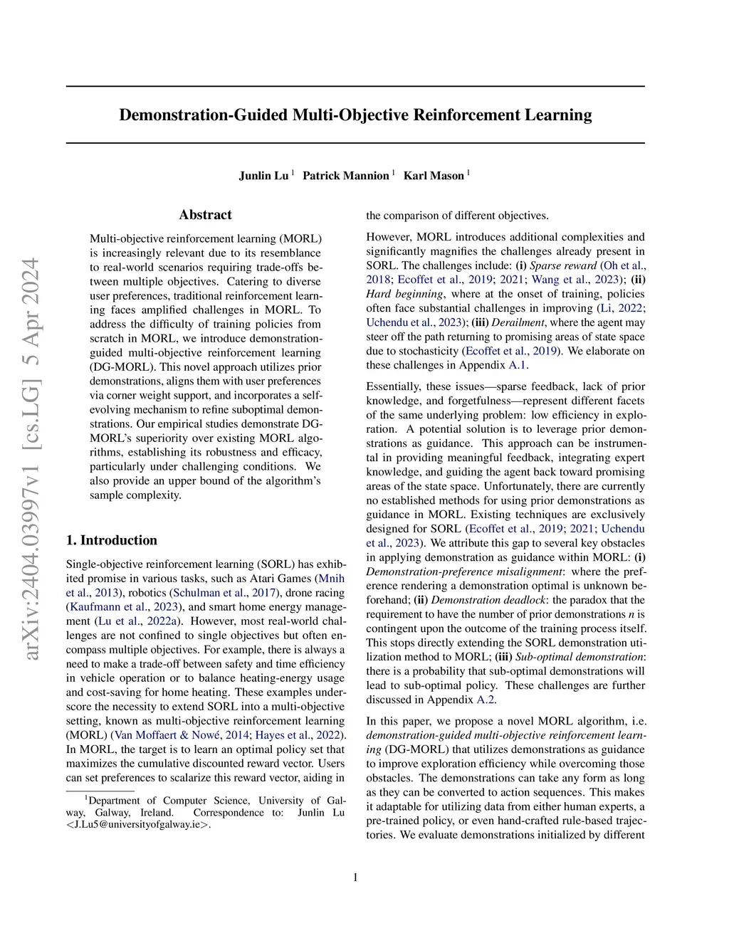 Demonstration Guided Multi-Objective Reinforcement Learning