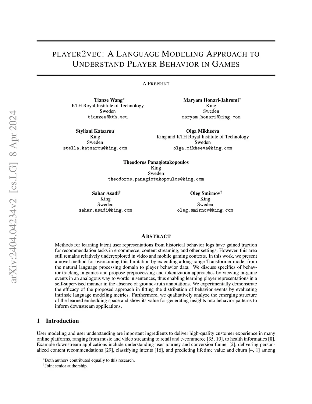 player2vec: A Language Modeling Approach to Understand Player Behavior
