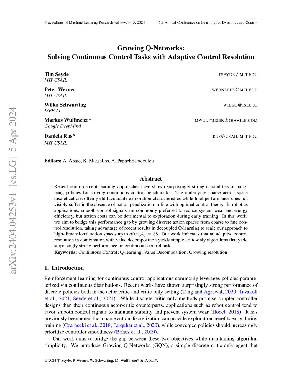 Recent reinforcement learning approaches have shown surprisingly strong capabilities of bang-bang policies for solving continuous control benchmarks. The underlying coarse action space discretizations often yield favourable exploration characteristics while final performance does not visibly suffer in the absence of action penalization in line with optimal control theory. In robotics applications, smooth control signals are commonly preferred to reduce system wear and energy efficiency, but action costs can be detrimental to exploration during early training. In this work, we aim to bridge this performance gap by growing discrete action spaces from coarse to fine control resolution, taking advantage of recent results in decoupled Q-learning to scale our approach to high-dimensional action spaces up to dim(A) = 38. Our work indicates that an adaptive control resolution in combination with value decomposition yields simple critic-only algorithms that yield surprisingly strong performance on continuous control tasks.