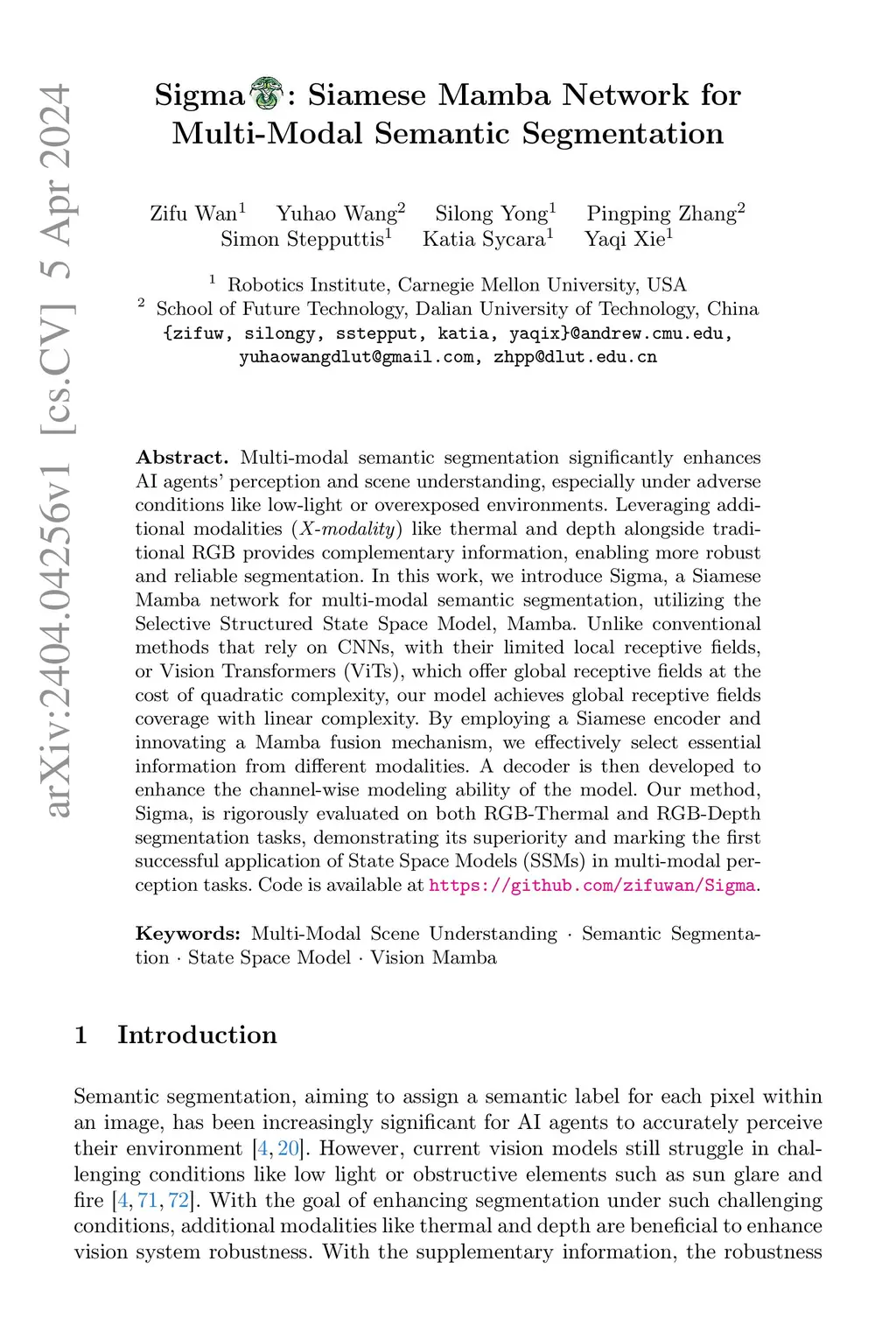 Sigma: Siamese Mamba Network for Multi-Modal Semantic Segmentation