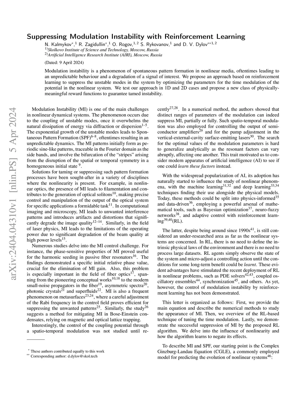 Modulation instability is a phenomenon of spontaneous pattern formation in nonlinear media, oftentimes leading to an unpredictable behaviour and a degradation of a signal of interest. We propose an approach based on reinforcement learning to suppress the unstable modes by optimizing the parameters for the time modulation of the potential in the nonlinear system. We test our approach in 1D and 2D cases and propose a new class of physically-meaningful reward functions to guarantee tamed instability.