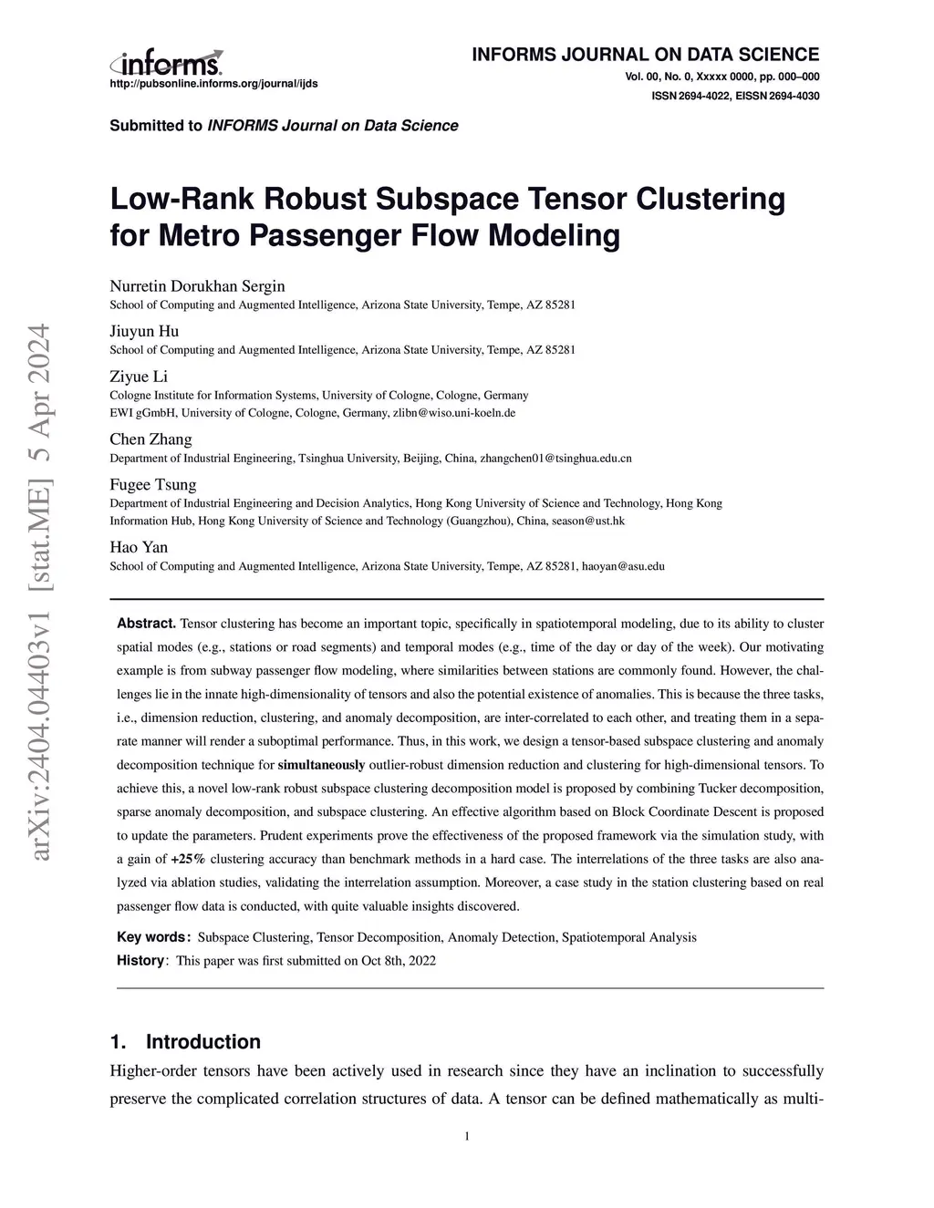 Low-Rank Robust Subspace Tensor Clustering for Metro Passenger Flow