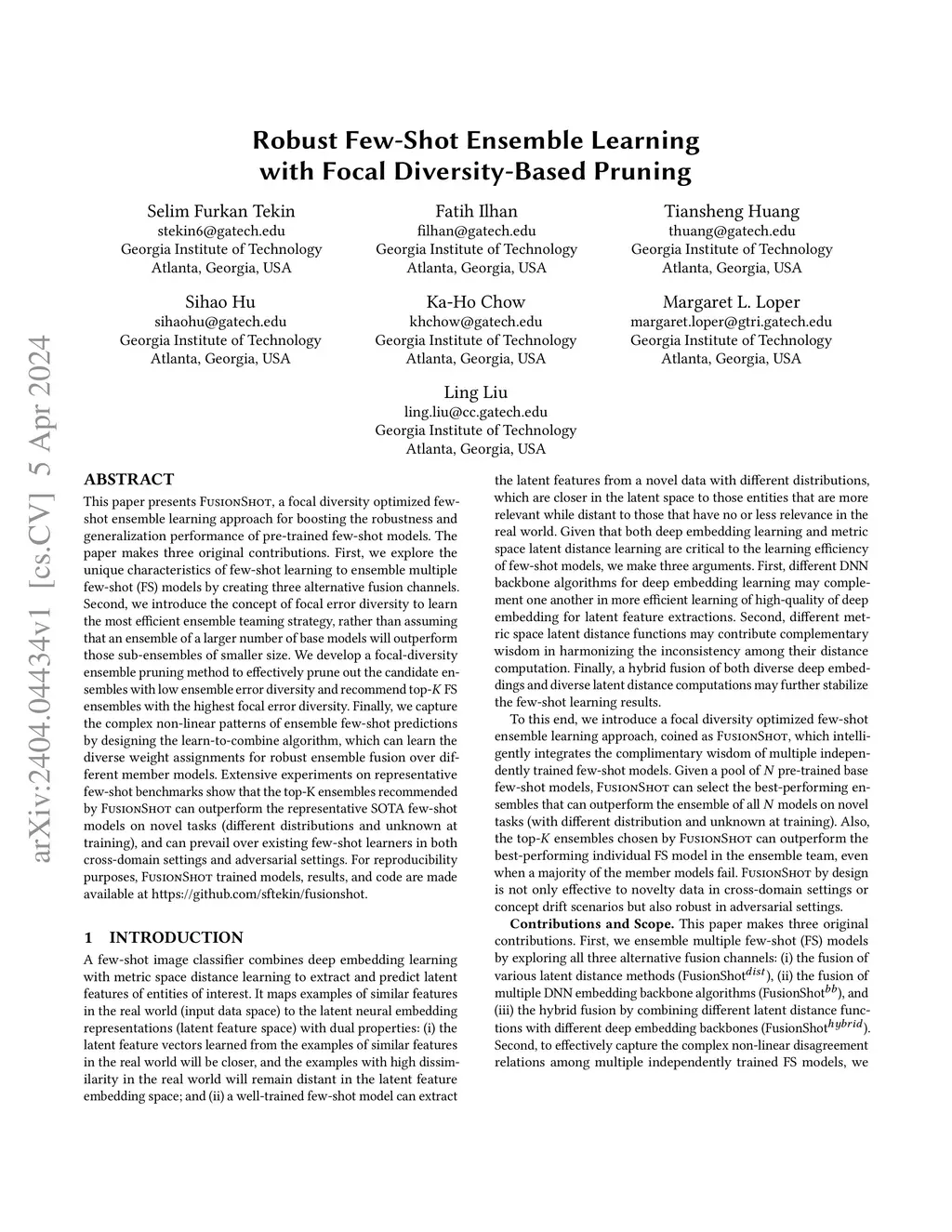 This paper presents FusionShot, a focal diversity optimized few-shot ensemble learning approach for boosting the robustness and generalization performance of pre-trained few-shot models. The paper makes three original contributions. First, we explore the unique characteristics of few-shot learning to ensemble multiple few-shot (FS) models by creating three alternative fusion channels. Second, we introduce the concept of focal error diversity to learn the most efficient ensemble teaming strategy, rather than assuming that an ensemble of a larger number of base models will outperform those sub-ensembles of smaller size. We develop a focal-diversity ensemble pruning method to effectively prune out the candidate ensembles with low ensemble error diversity and recommend top- FS ensembles with the highest focal error diversity. Finally, we capture the complex non-linear patterns of ensemble few-shot predictions by designing the learn-to-combine algorithm, which can learn the diverse weight assignments for robust ensemble fusion over different member models. Extensive experiments on representative few-shot benchmarks show that the top-K ensembles recommended by FusionShot can outperform the representative SOTA few-shot models on novel tasks (different distributions and unknown at training), and can prevail over existing few-shot learners in both cross-domain settings and adversarial settings. For reproducibility purposes, FusionShot trained models, results, and code are made available at https://github.com/sftekin/fusionshot