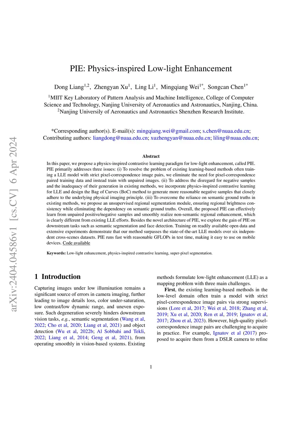 PIE: Physics-inspired Low-light Enhancement
