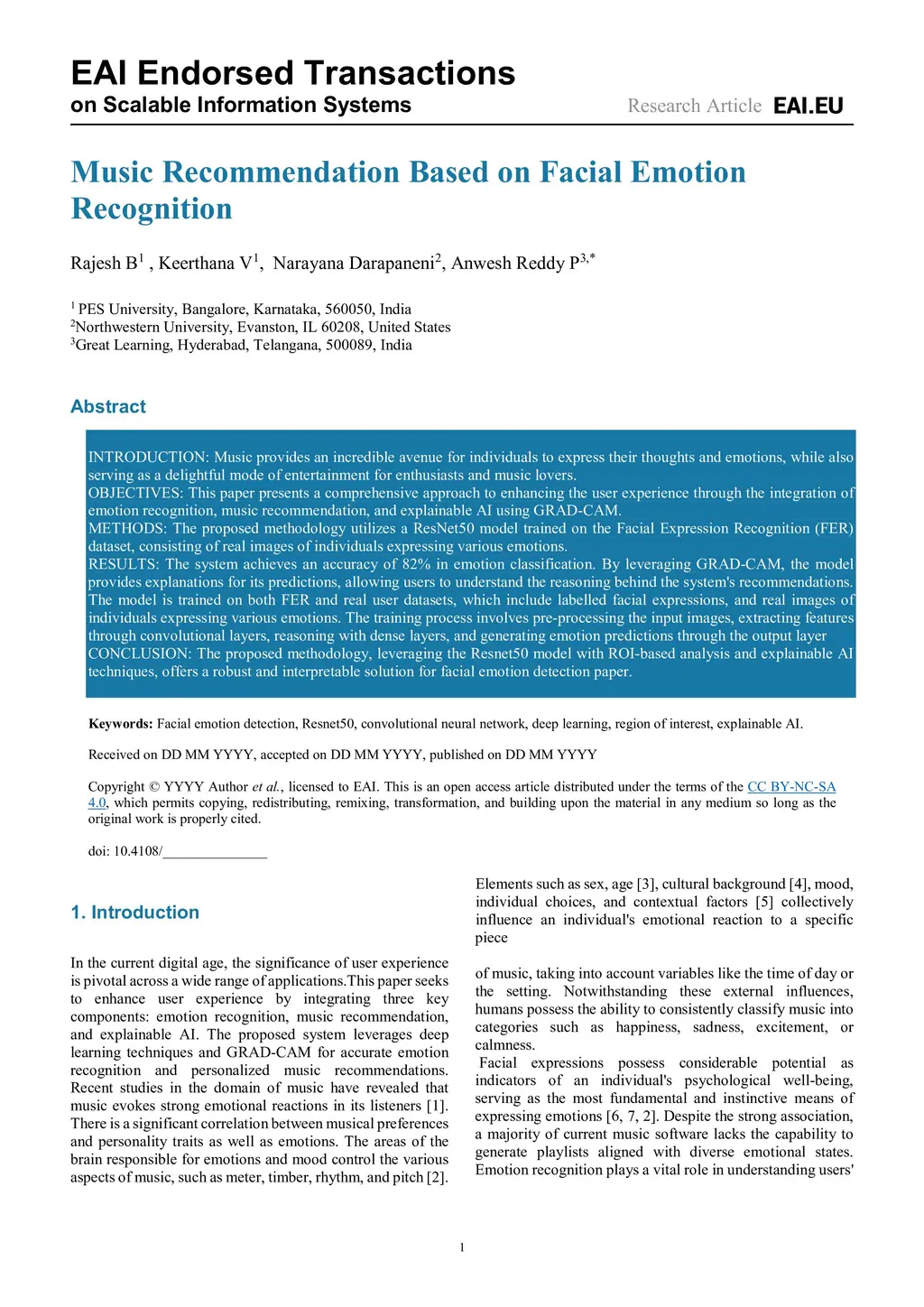 Introduction: Music provides an incredible avenue for individuals to express their thoughts and emotions, while also serving as a delightful mode of entertainment for enthusiasts and music lovers. Objectives: This paper presents a comprehensive approach to enhancing the user experience through the integration of emotion recognition, music recommendation, and explainable AI using GRAD-CAM. Methods: The proposed methodology utilizes a ResNet50 model trained on the Facial Expression Recognition (FER) dataset, consisting of real images of individuals expressing various emotions. Results: The system achieves an accuracy of 82% in emotion classification. By leveraging GRAD-CAM, the model provides explanations for its predictions, allowing users to understand the reasoning behind the system's recommendations. The model is trained on both FER and real user datasets, which include labelled facial expressions, and real images of individuals expressing various emotions. The training process involves pre-processing the input images, extracting features through convolutional layers, reasoning with dense layers, and generating emotion predictions through the output layer. Conclusion: The proposed methodology, leveraging the Resnet50 model with ROI-based analysis and explainable AI techniques, offers a robust and interpretable solution for facial emotion detection paper.