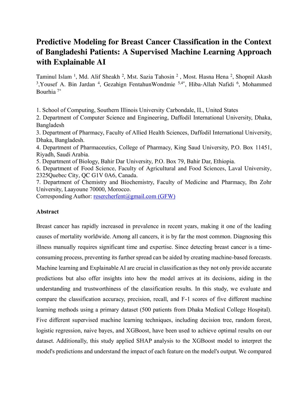 Bangladeshi Patients: A Supervised Machine Learning Approach with Explainable