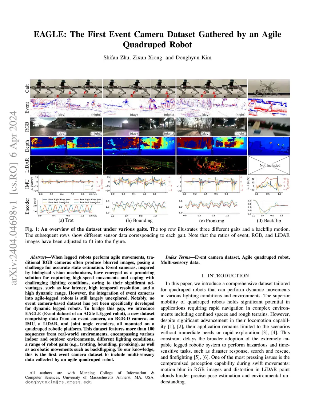 When legged robots perform agile movements, traditional RGB cameras often produce blurred images, posing a challenge for rapid perception. Event cameras have emerged as a promising solution for capturing rapid perception and coping with challenging lighting conditions thanks to their low latency, high temporal resolution, and high dynamic range. However, integrating event cameras into agile-legged robots is still largely unexplored. Notably, no dataset including event cameras has yet been developed for the context of agile quadruped robots. To bridge this gap, we introduce CEAR, a dataset comprising data from an event camera, an RGB-D camera, an IMU, a LiDAR, and joint encoders, all mounted on a dynamic quadruped, Mini Cheetah robot. This comprehensive dataset features more than 100 sequences from real-world environments, encompassing various indoor and outdoor environments, different lighting conditions, a range of robot gaits (e.g., trotting, bounding, pronking), as well as acrobatic movements like backflip. To our knowledge, this is the first event camera dataset capturing the dynamic and diverse quadruped robot motions under various setups, developed to advance research in rapid perception for quadruped robots.