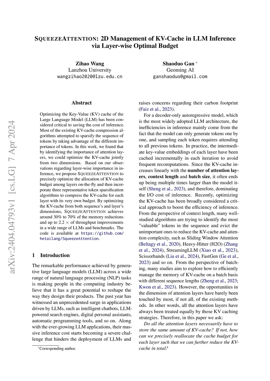 SqueezeAttention: 2D Management of KV-Cache in LLM Inference via