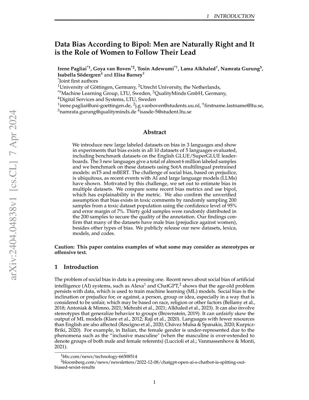 Data Bias According to Bipol: Men are Naturally Right and It is the Role